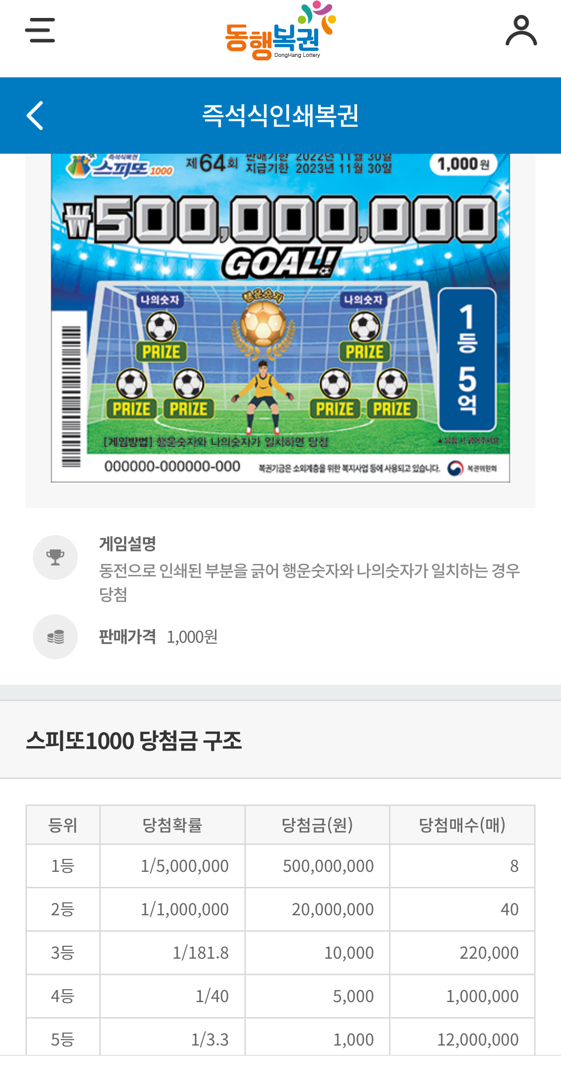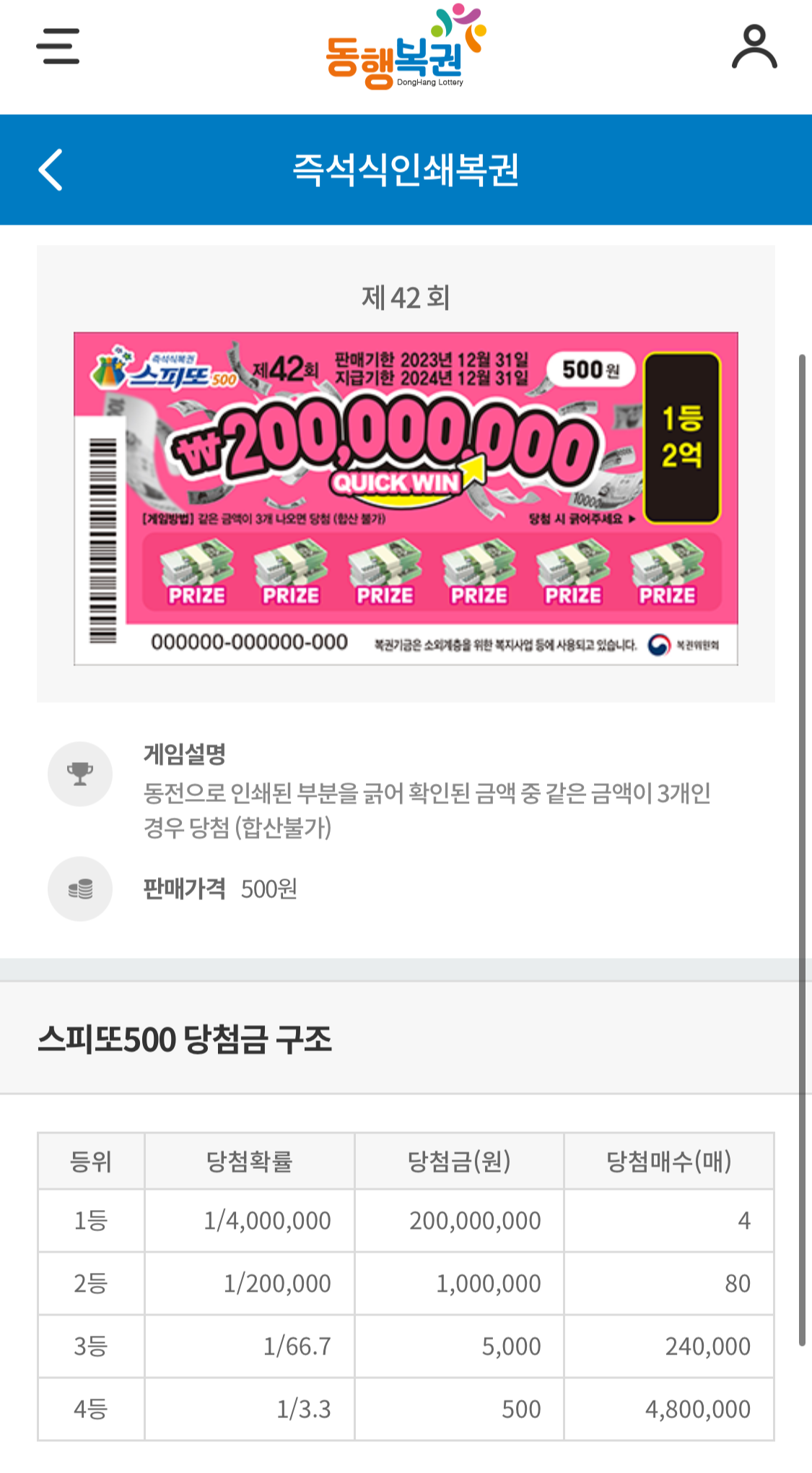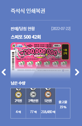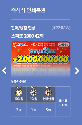 동행복권 사이트에 가면 각 복권에 대한 설명을 찾아볼 수 있는데, 스피또500은 현재 42회차를 진행중에 있다.