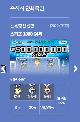 로또 같은 경우, 매주 1등 당첨자가 나오지만, 즉석복권 중에 하나인 스피또의 경우에는 아무래도 매주 1등 당첨자를 뽑는 방식은 아닐것 같아서 한번 찾아보기로 했다.