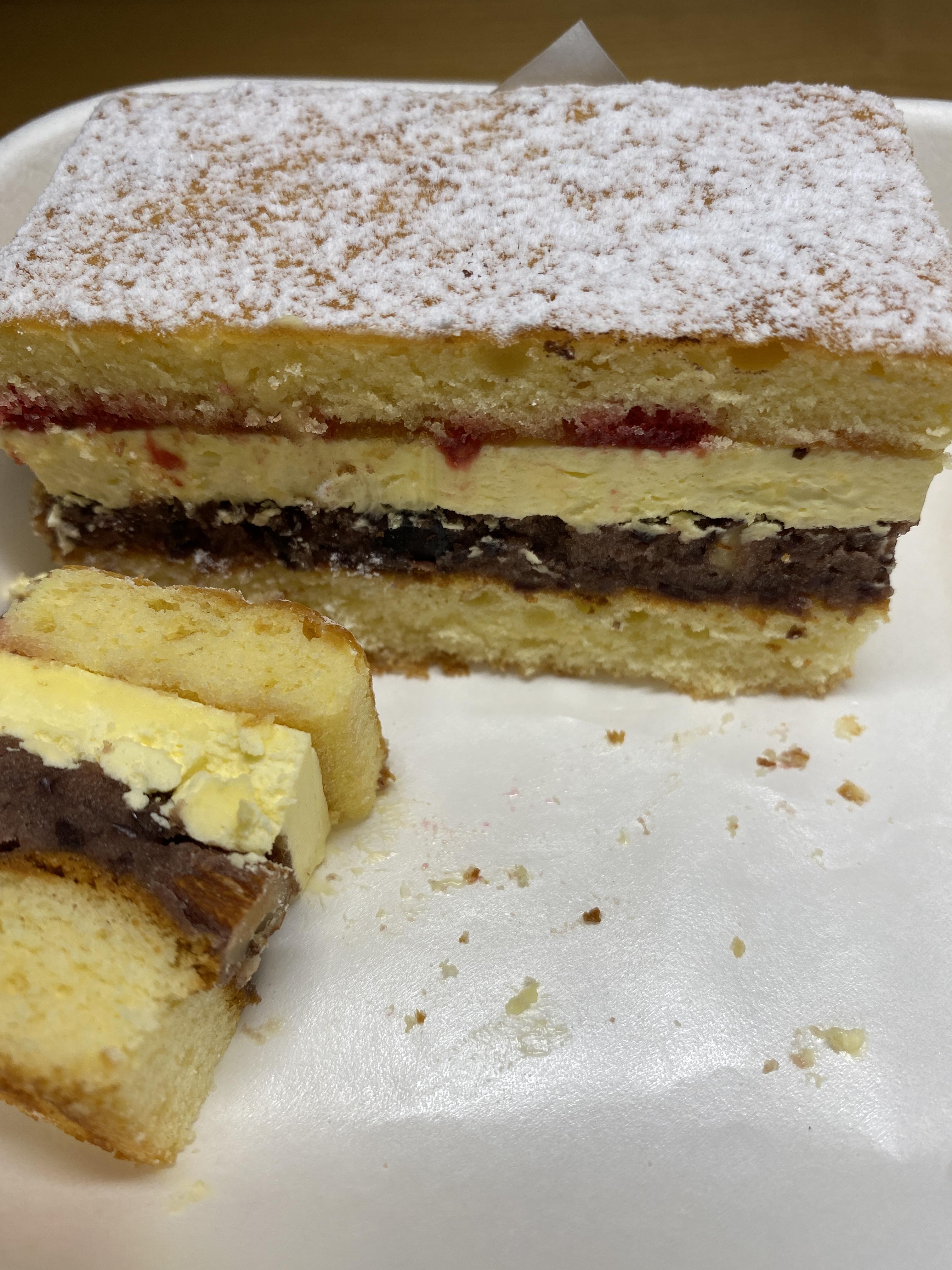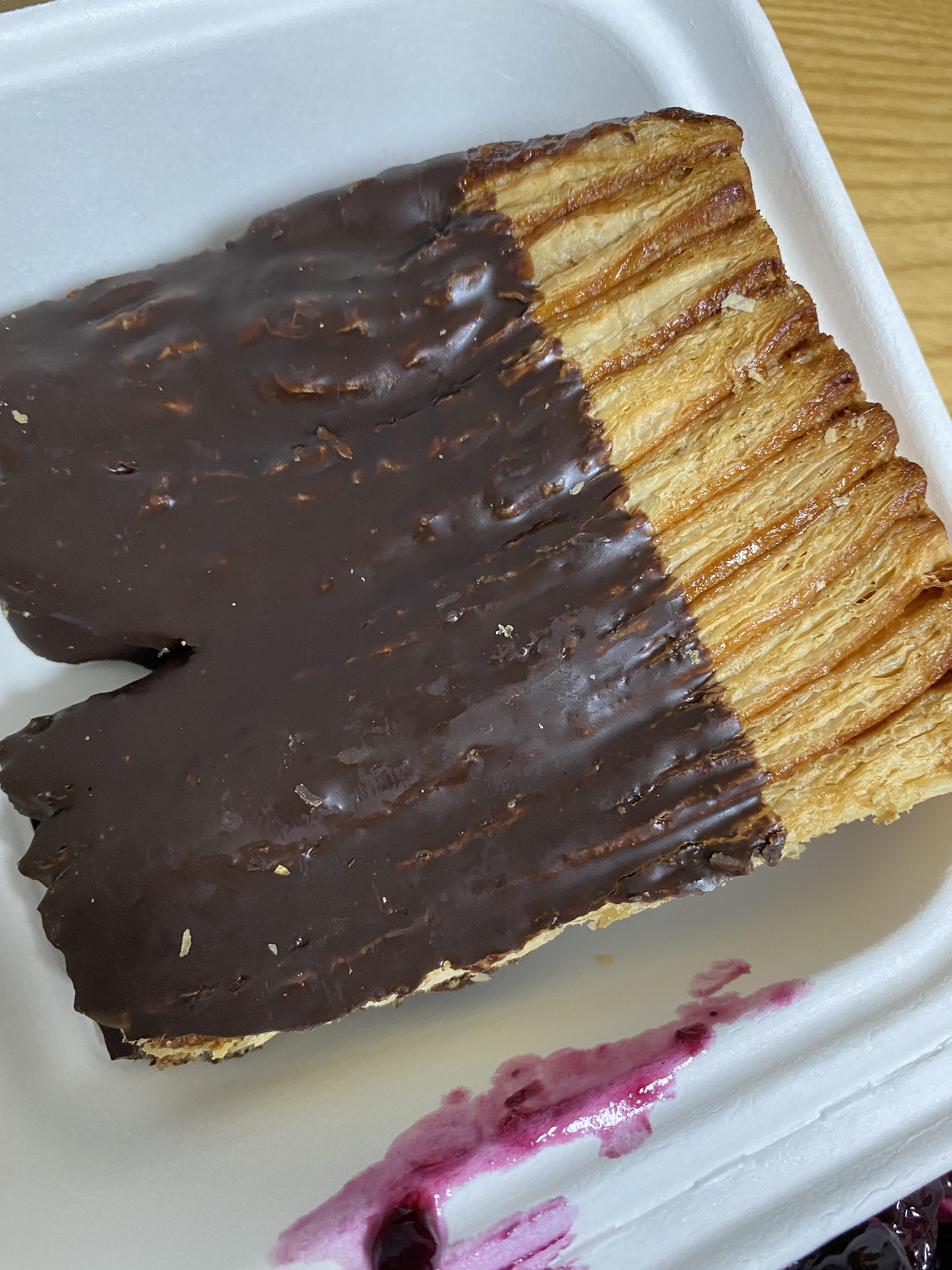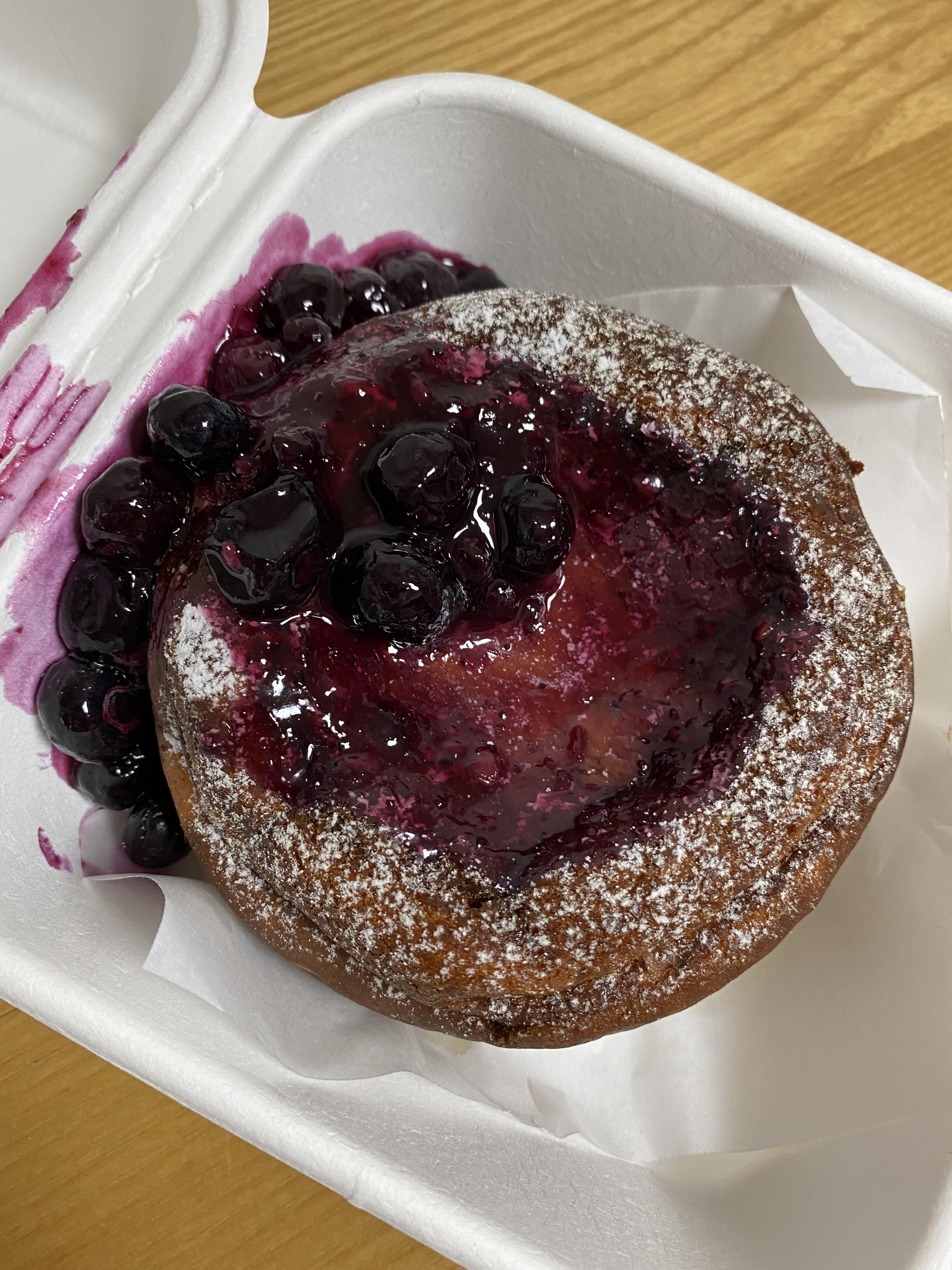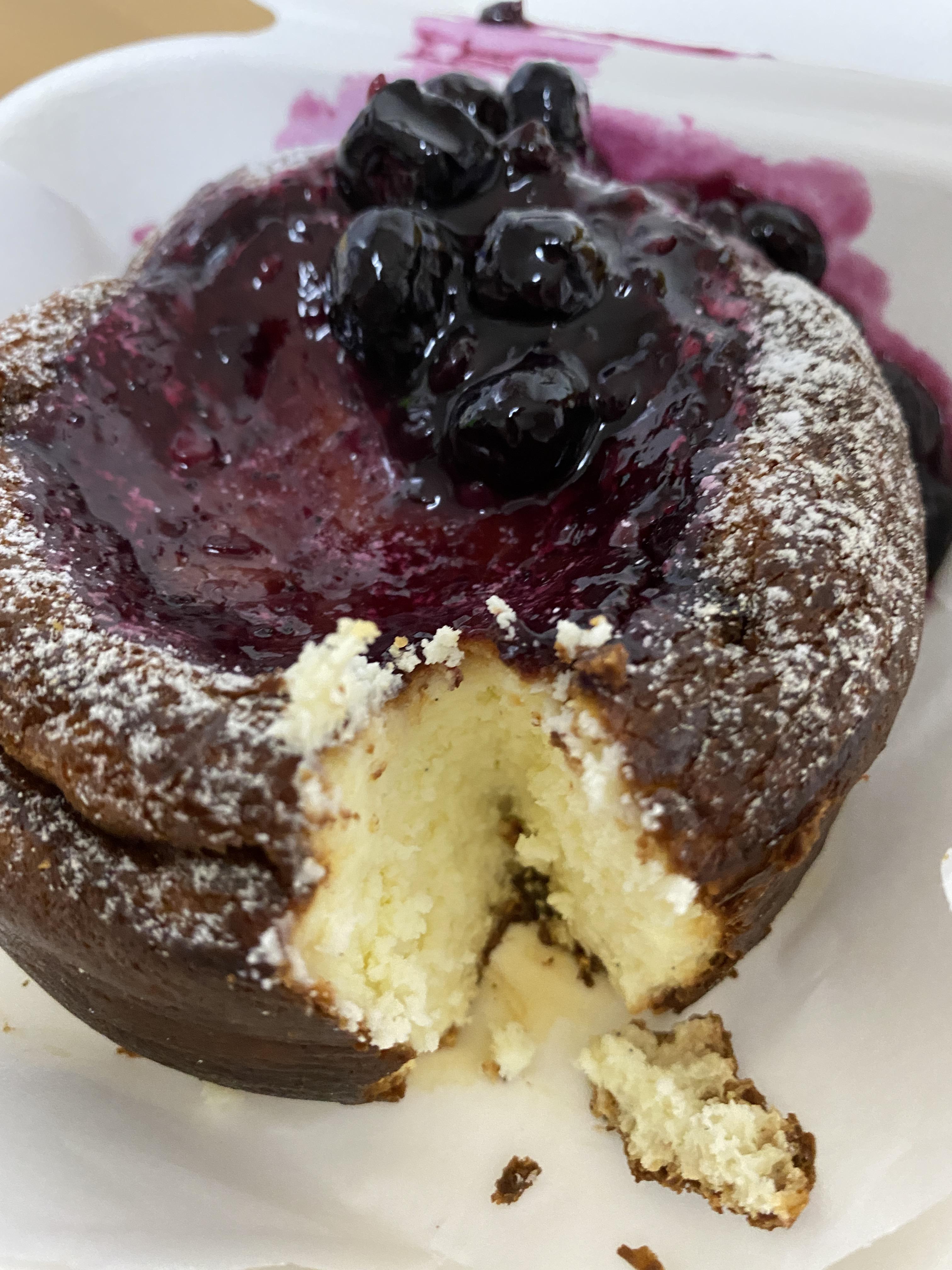 그날 먹었던 빵중에 가장 단가가 높은 케이크다. 위쪽맛은 보이는대로 블루베리에다가 콩포트가 발라진 맛이고 속은 치즈케이크 맛이 난다.