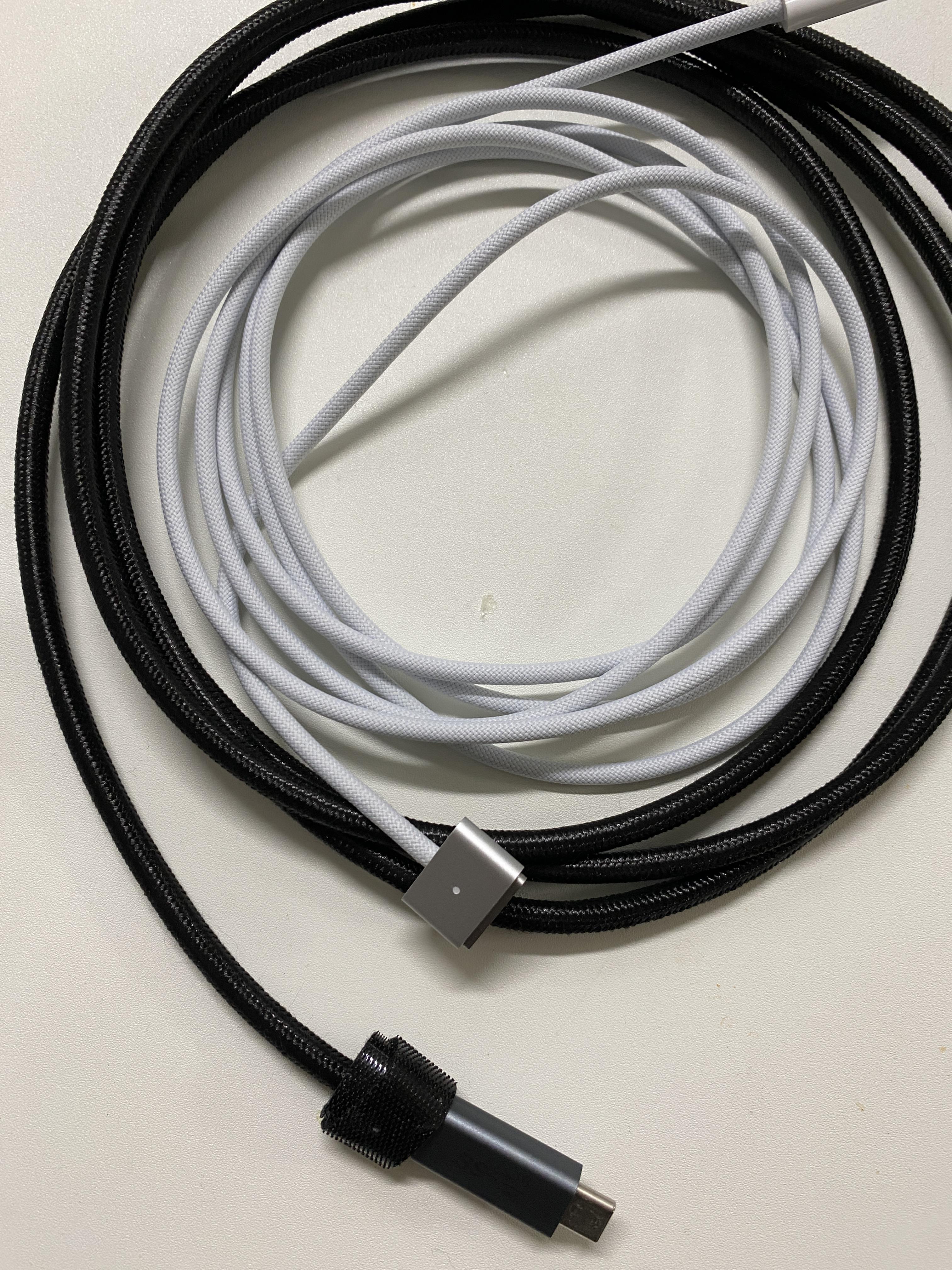 물론 충전 케이블은 맥북프로 구매시 기본으로 들어 있던 USB-C-MagSafe 3 케이블을 붙여서 사용하고 있다. 불이 들어와서 충전여부 확인도 가능하고 (충전이 완료되면 녹색으로 변한다고 한다), 말그대로 safe 기능도 마음에 들기도 하고, 무엇보다도 얼마안되는 USB-C 포트를 아낄 수 있기 때문이다. 물론 이것도 공홈에서는 5만원이 넘어간다. 이것도 그냥 당근해버릴까...