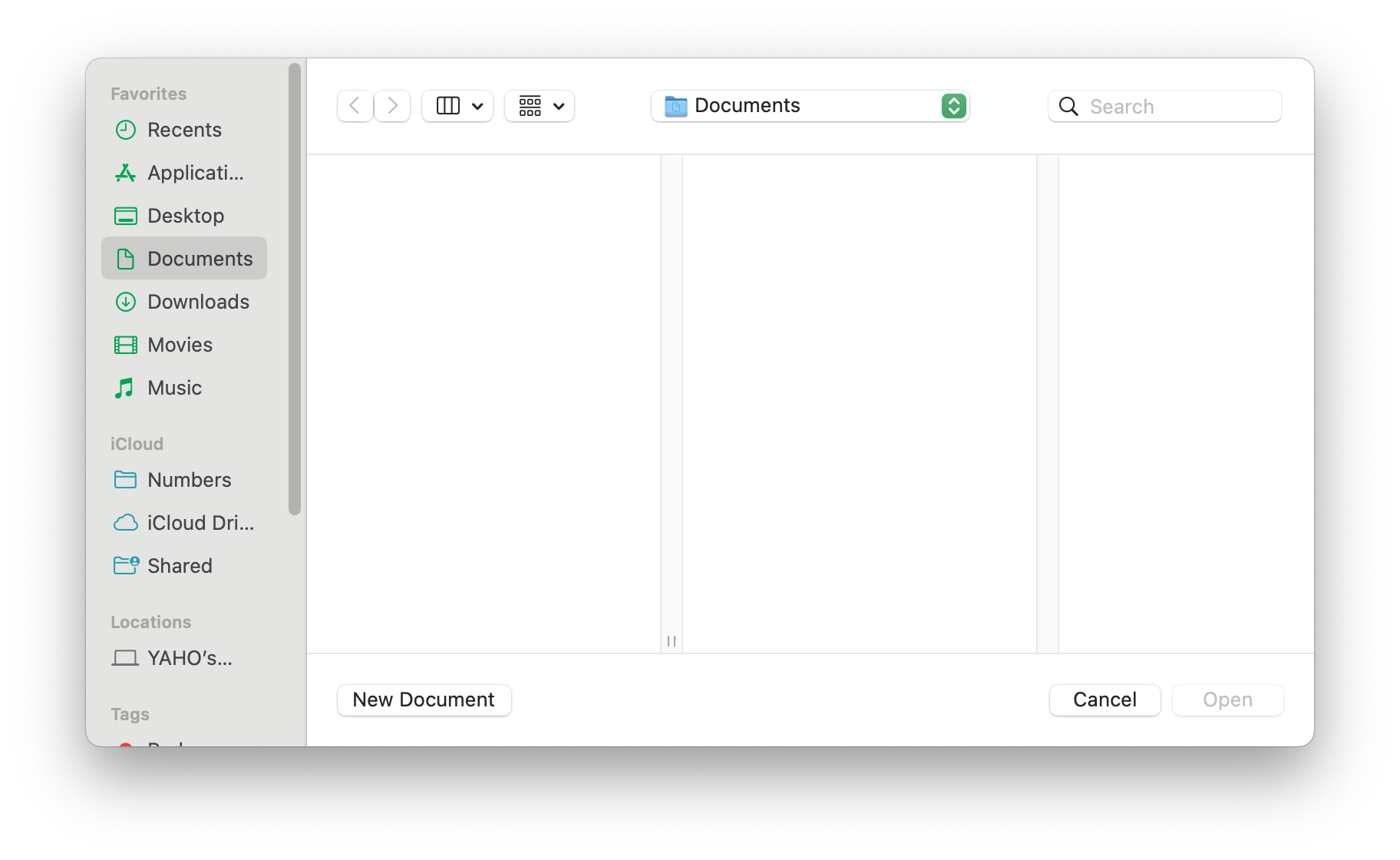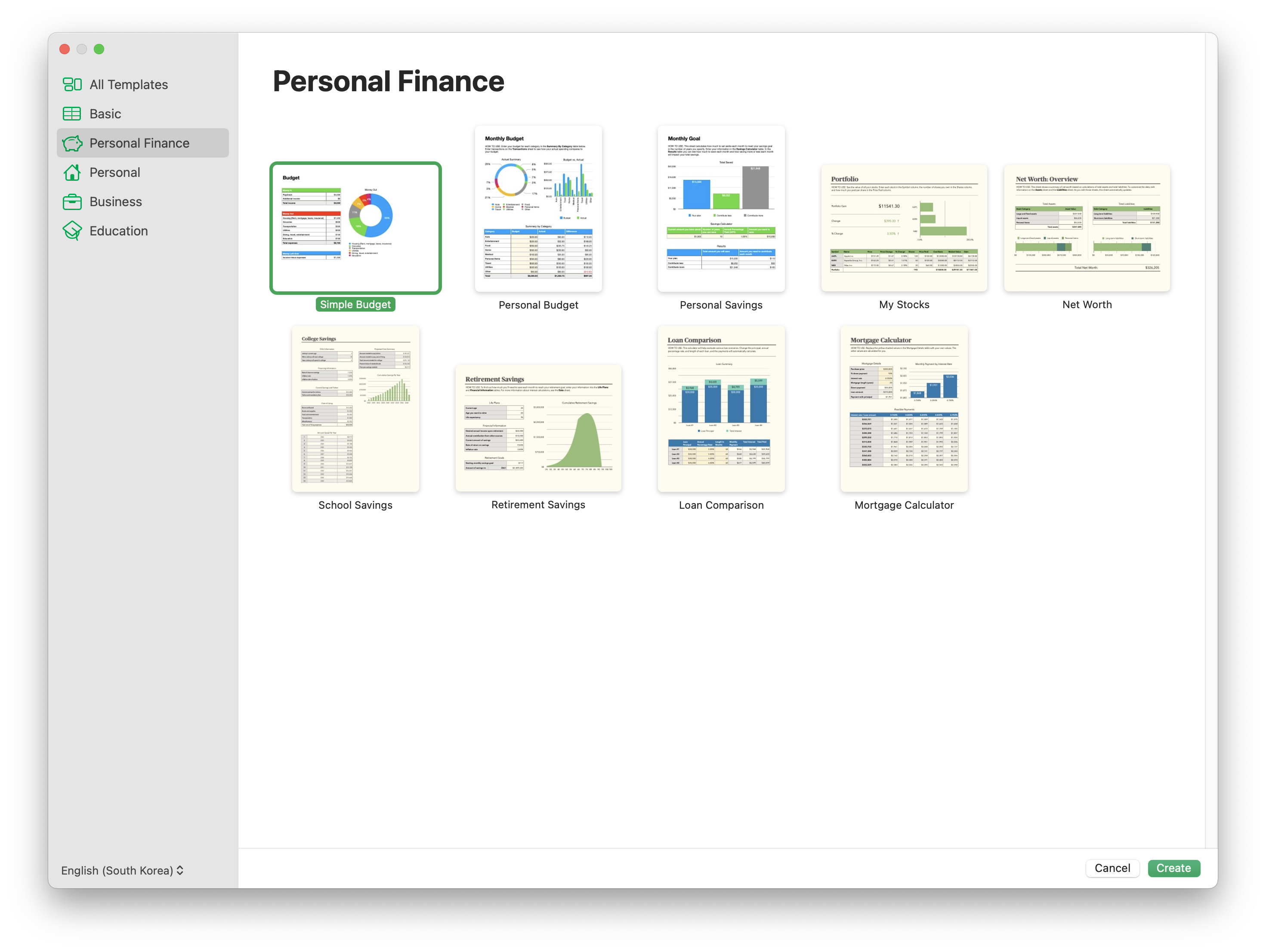처음 넘버스를 켜면 아래와 같은 화면이 나온다. 하단의 새문서를 클릭하면, 애플에서 제공하는 다양한 템플릿을 바로 활용할 수가 있다.
