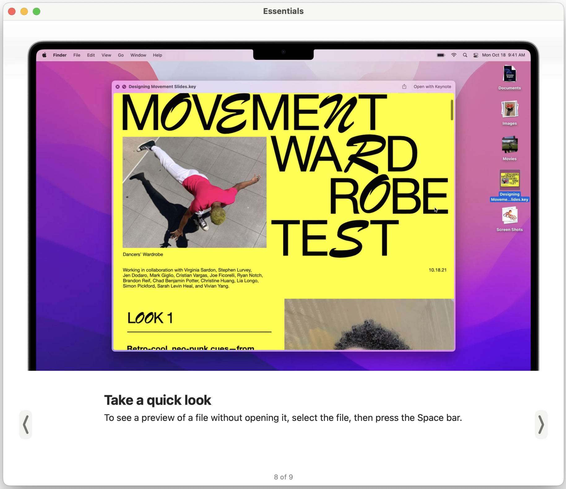 어느날 갑자기 새로운 기능이 있다면서 팝없이 떴는데, 다음과 같이 미리보기를 할 수 있는 기능을 알려줬다. 내용을 확인하고 싶은 파일이 있으면, 사진이나 파일, 폴더를 클릭 후 스페이스바를 누르면 아래와 같이 우측 상단에 'open with preview'라는 텍스트가 뜨면서 미리보기 화면이 나타난다.