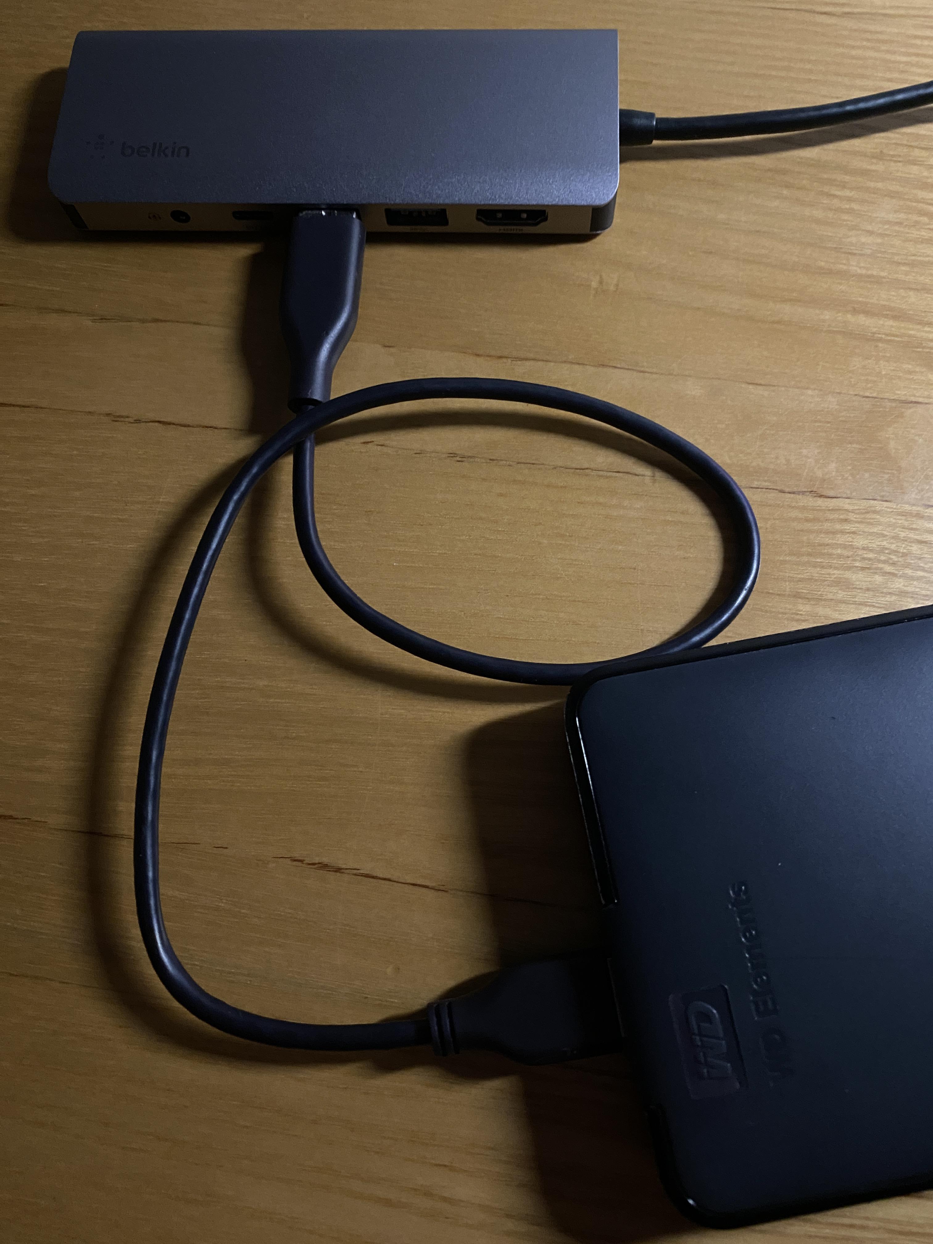 기존에 사용하던 외장하드를 연결해봤다. 당연하게도 기존 벨킨 USB-C to A 어댑터를 이용한 연결보다는 살짝 늦은 감이 있지만, 큰 문제는 없어 보인다.