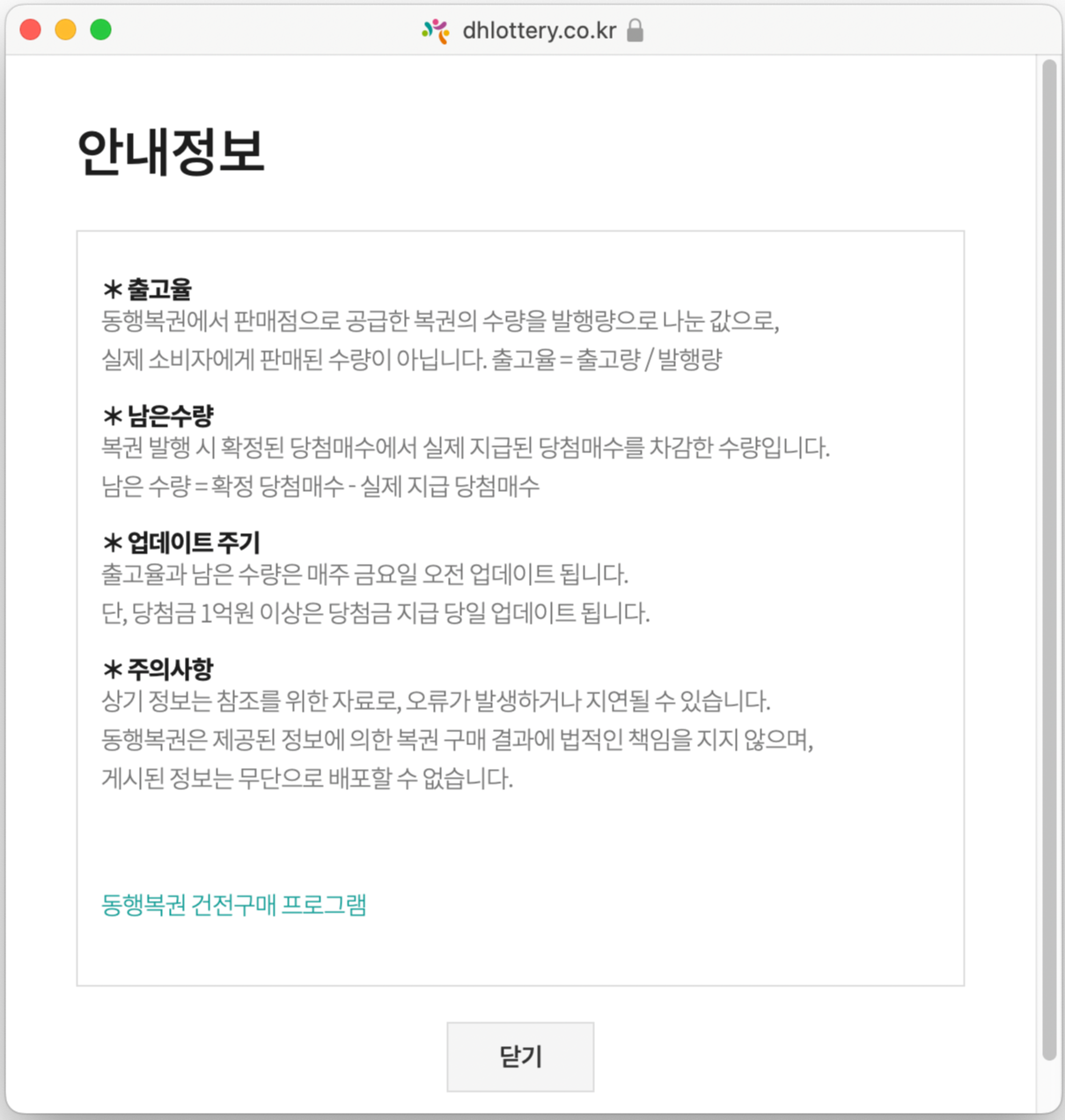 아래는 동행복권 사이트에서 제공하는 출고율, 남은수량에 대한 정의를 담고 있다. 출고율은 판매량이 아니다. 그것만 정확하게 기억하고 있으면 된다..