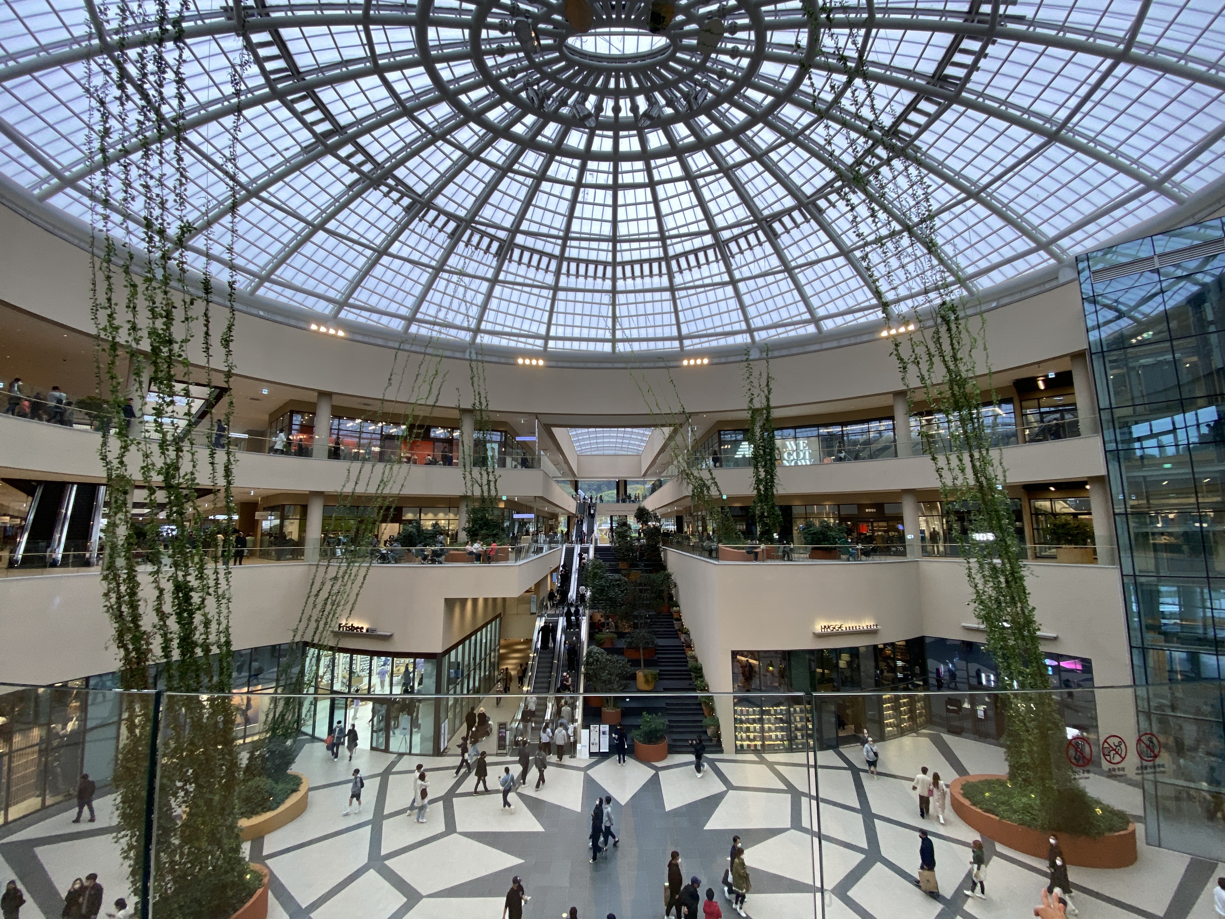 식당을 비롯해 대부분의 많은 입점 브랜드들은 실내에 있는데, 식당가를 통하면 비를 맞지 않고도 다양한 공간을 이동할 수가 있다. 산을 깍아서 만든건지 모르겠지만, 정면 입구쪽과 식당쪽의 높이가 조금 다른데 내부를 걸어다닐때는 평지처럼 느낄 수 있도록 디자인을 잘 해놨기 때문에 딱히 불편한 점은 없다.