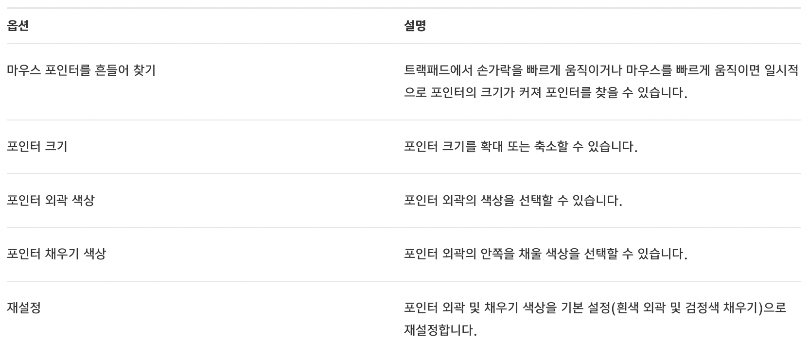 이제서야 마음껏 흔들어도, 포인터가 확대되거나 강조되지 않는다...