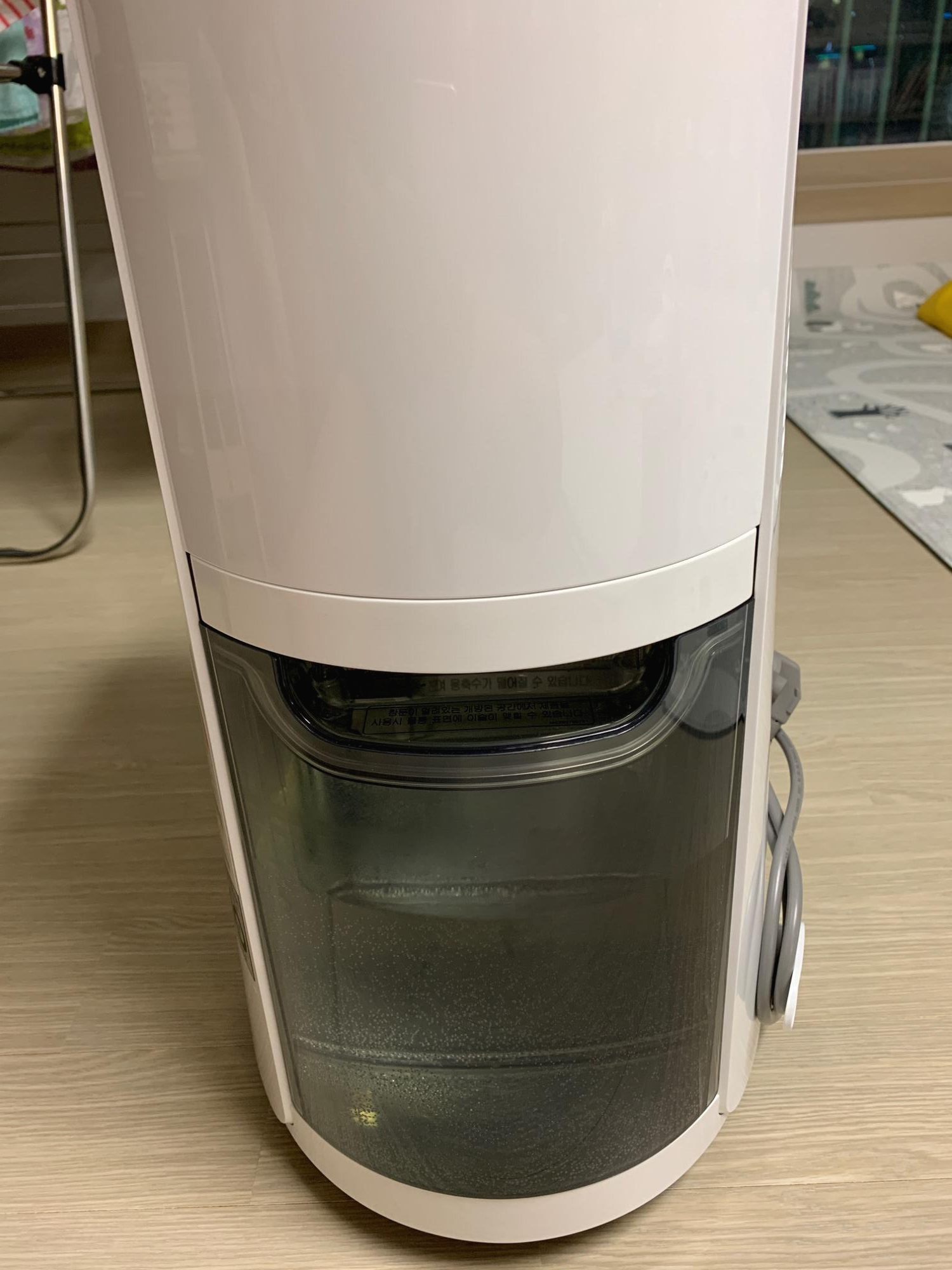 위의 LG공식 링크에서 나온 설명과 같이, 다용도실에서 겨울철 습기를 제거하는 데 사용을 했고, 장마철에는 드레스룸에 가져다 놓고 사용했으며, 장마철에 집안 습도를 유지한다던가, 모든 계절에 빨래를 건조하는 데 사용했습니다. 습한 공간마다 이동 제습이 가능했던 것은 바로 매끄럽게 회전하는 바퀴로 더 매끄러운 이지 휠 덕분이었으며, 들어서 옮기기에는 무게가 꽤 있지만, 핸들을 잡고 다른 곳으로 이동시키는 것은 무척 쉬웠습니다. 또한 물받이 통에 물이 가득 찼을 때, 자동으로 알려주고, 신호 램프가 작동되어 물통 비움 시기를 알려준 덕분에, 제습기를 켠 채로 밖에 나가 볼일을 볼 수 있었고, 한 손으로도 쉽게 제거 가능한 물통 덕분에, 나뿐만 아니라, 제습기를 처음 사용해보는 누구라도 쉽게 물통에서 물을 비울 수 있었습니다.