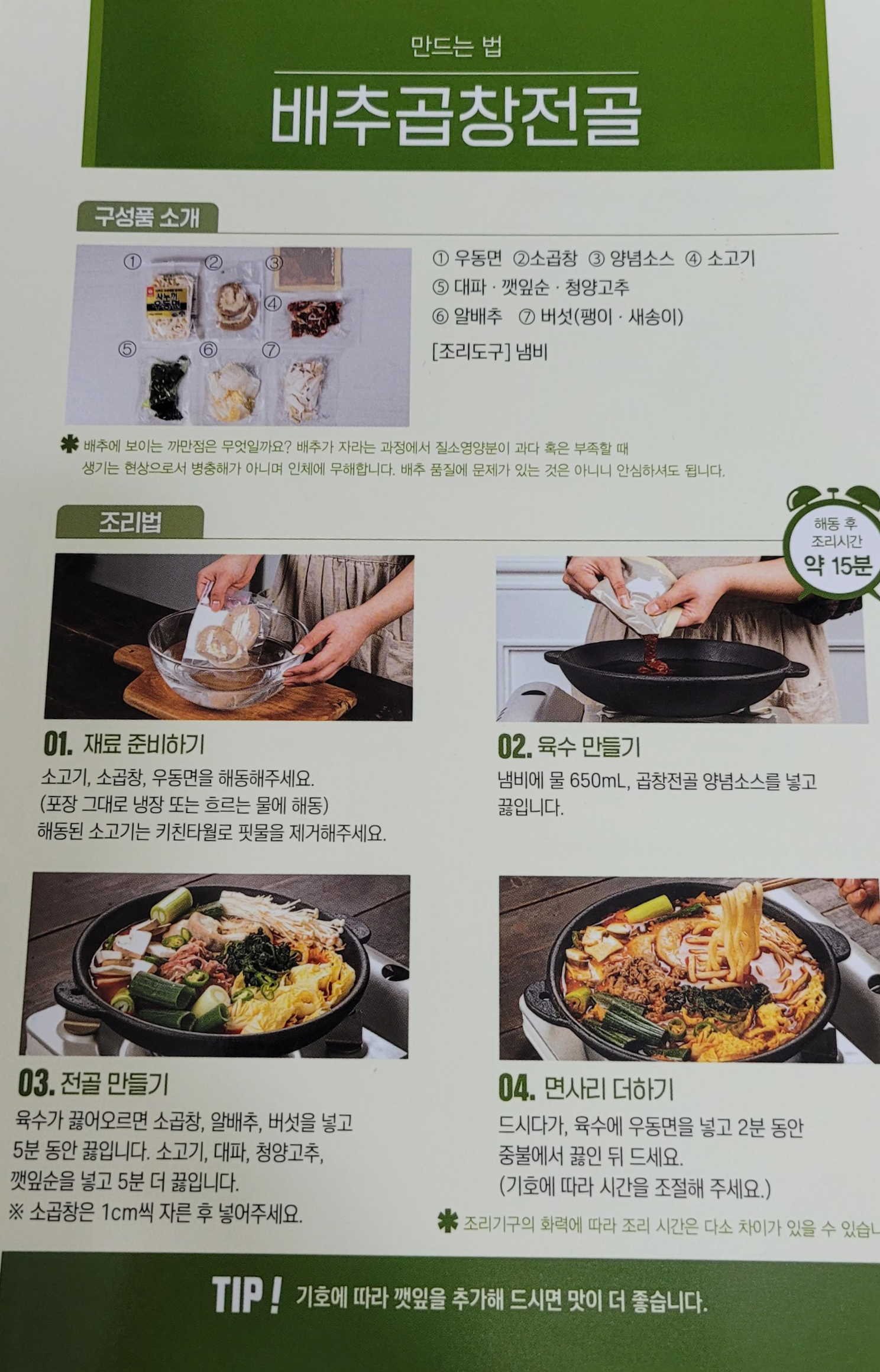 한 동네 건너 곱창전골 맛집이 존재하는데, 밀키트를 먹고 동네 맛집의 향기를 느낄 수 있었다.