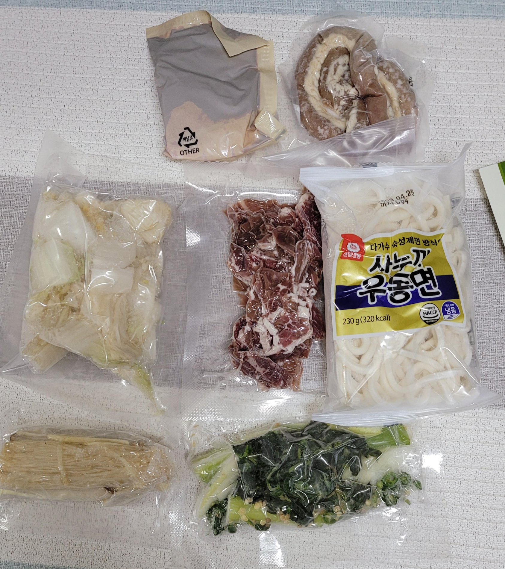 고기랑 곱창 같은 경우는 20분 정도 미지근한물에 담궈서 해동을 하는 것이 필요하다.