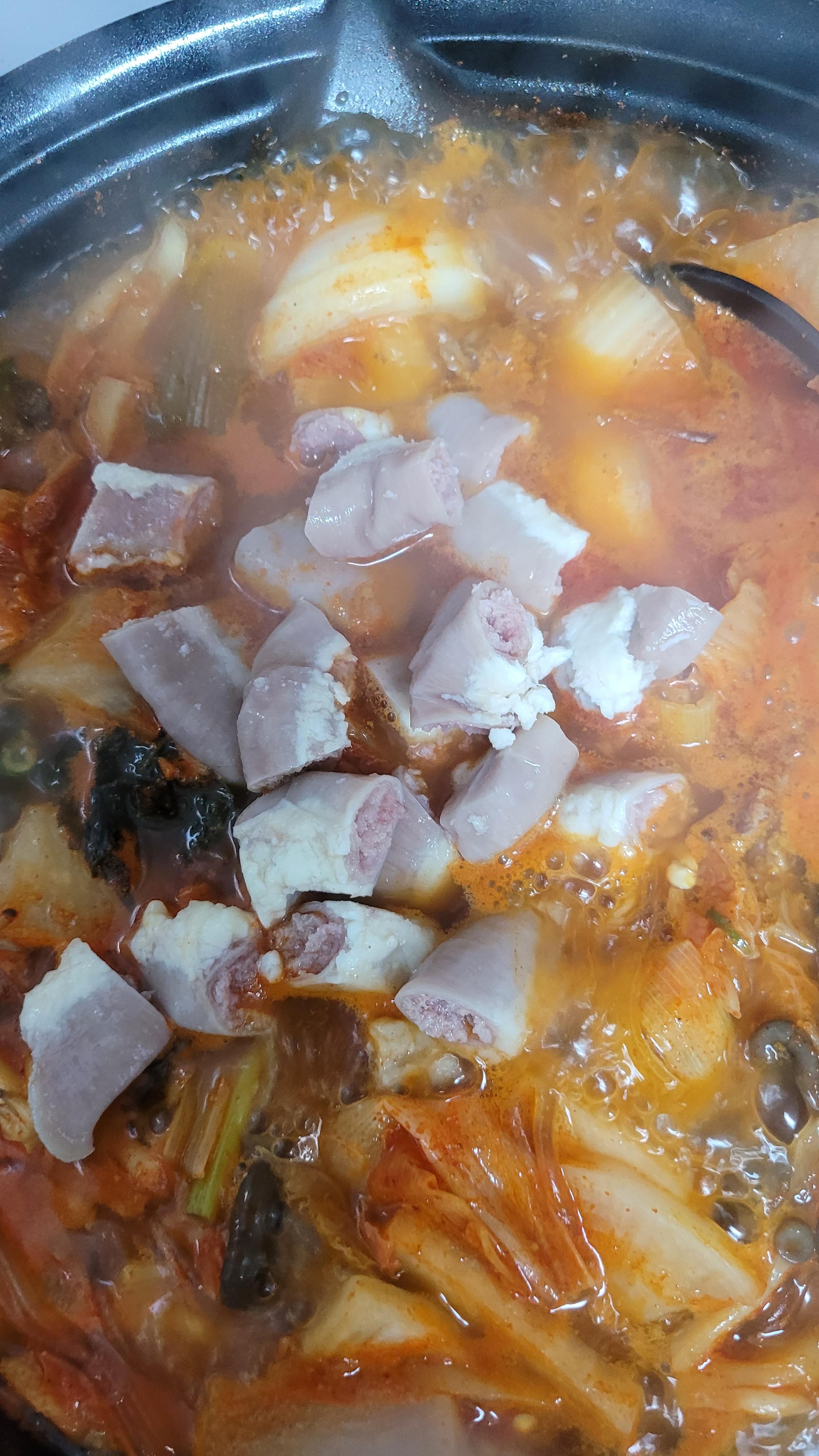 아래는 조리중의 사진으로 곱창양은 이정도 된다.
