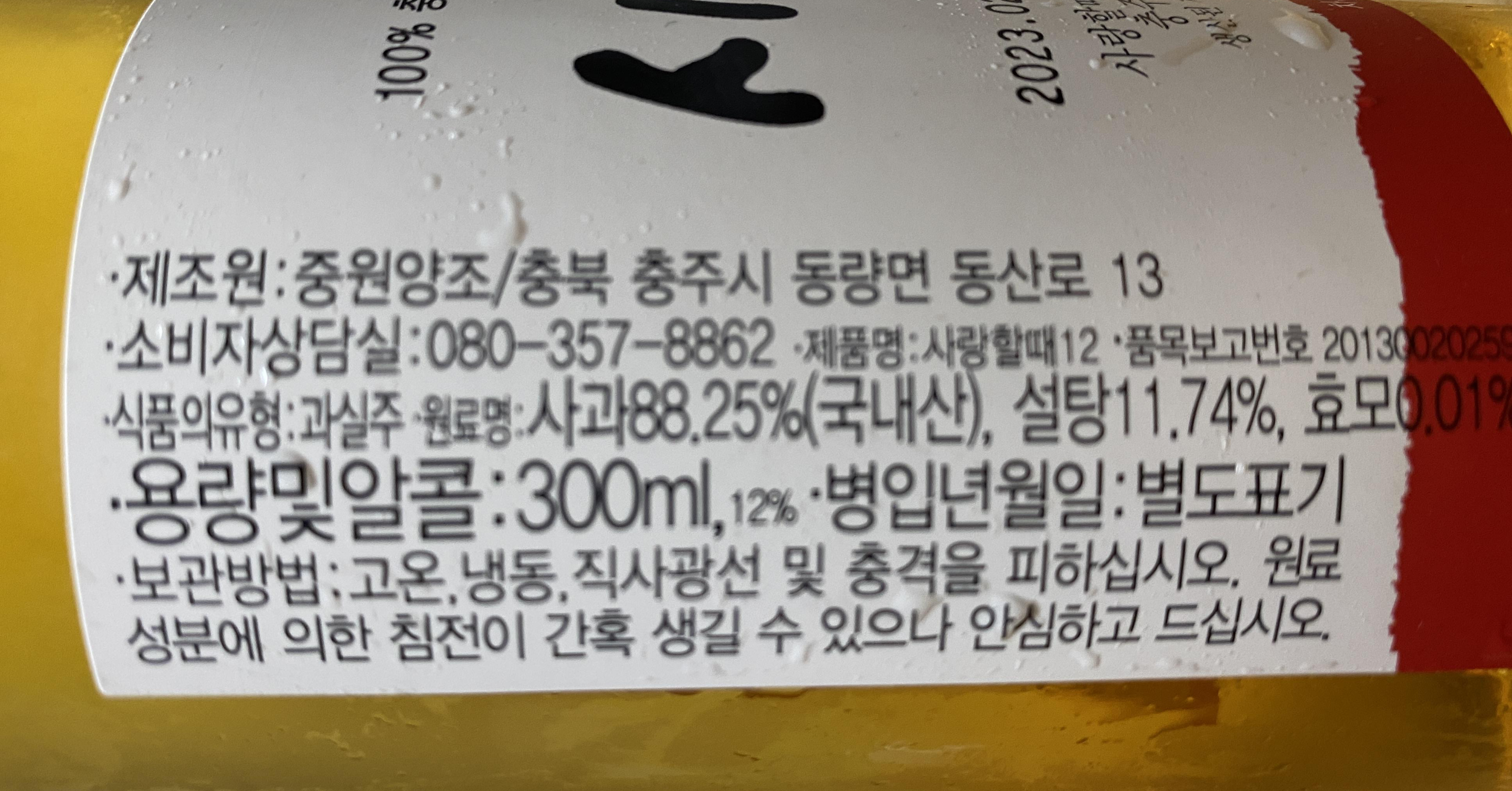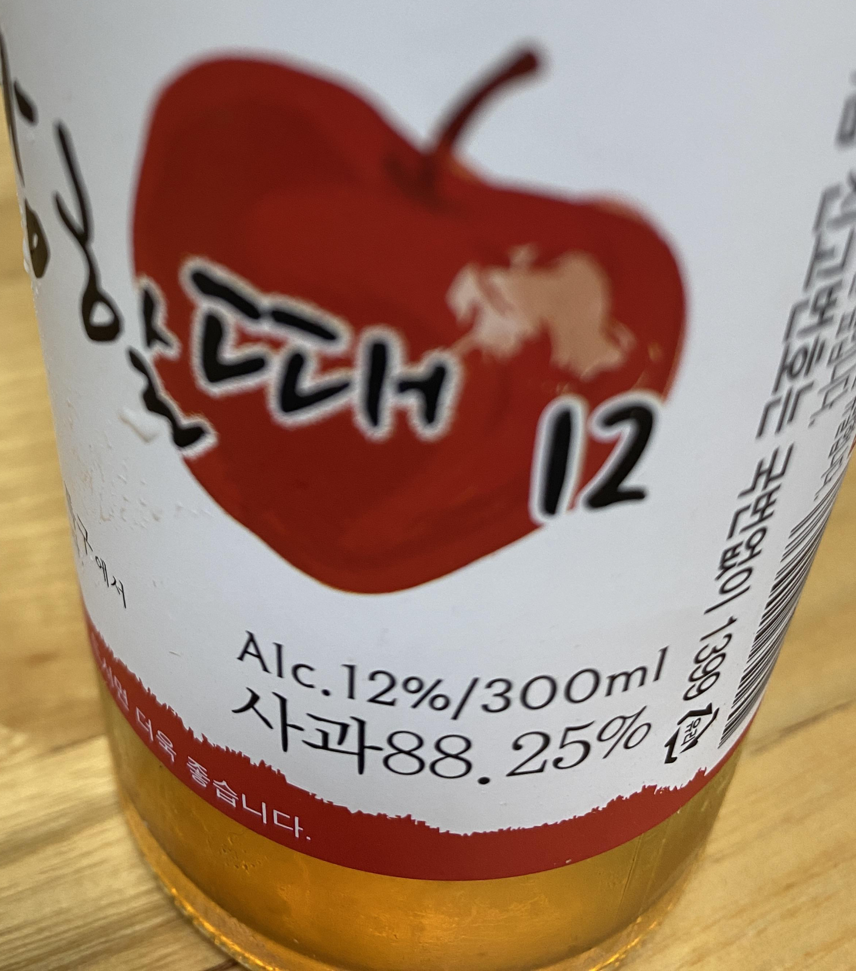 도수가 12도인데, 그중에 88%가 사과이다. 충주사과가 유명한데, 충주사과만 100% 사용한 발효주이다.