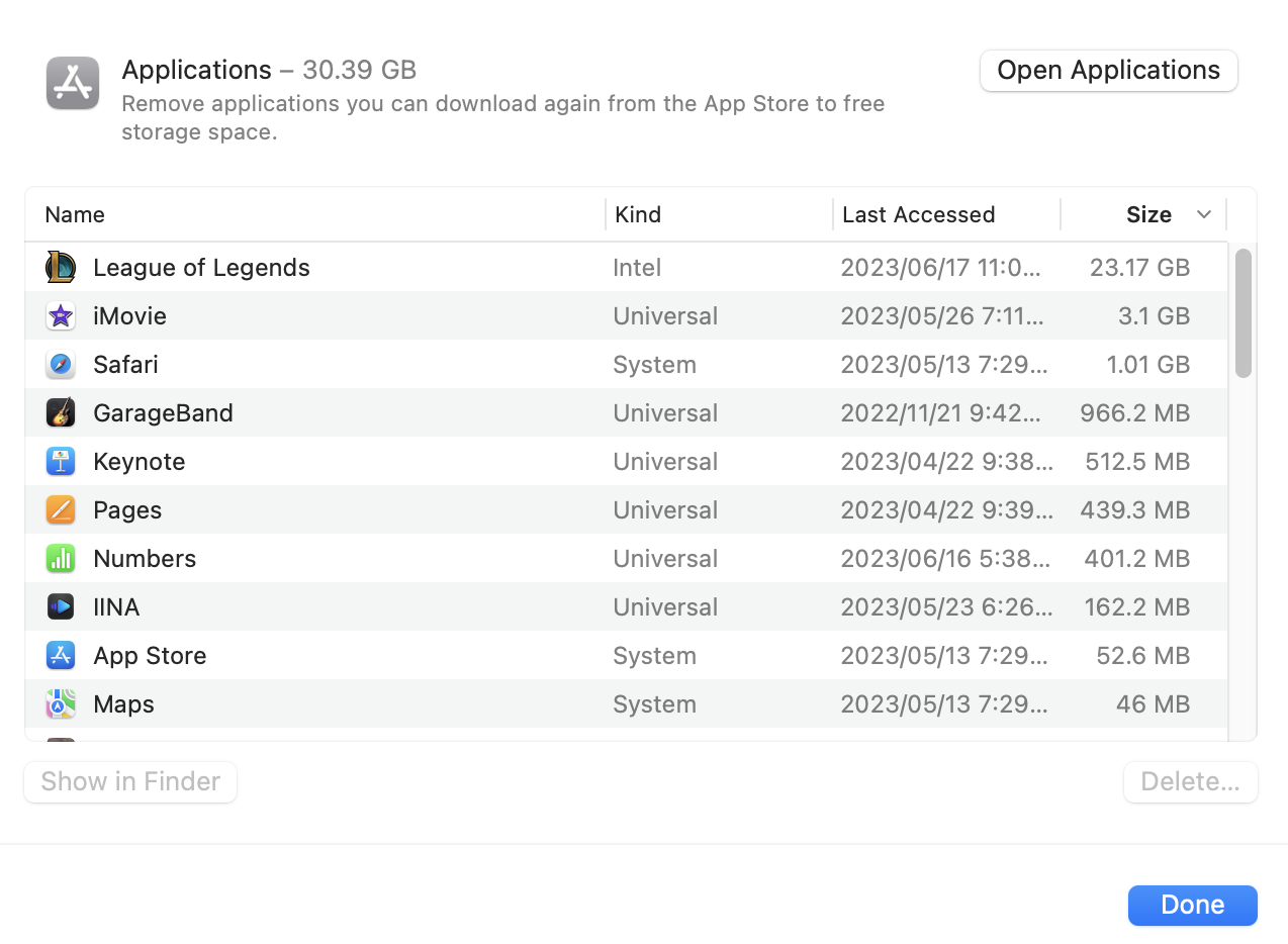 그리고 그냥 지우기만하면, 파인더의 응용프로그램에서는 더이상 리그오브레전드는 찾아볼수가 없다.