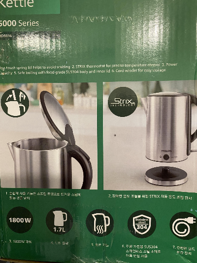 일단 박스샷부터. 1번 제품에 있는 기능과 비교하면 다른건 다 동일한거 같은데, 수위표시창이 없고, 대신 SUS304를 써서 만들었다고 되어 있다. 가열이 완료된 후에도 85도씨로 온도를 유지해주는 기능 또한 꿀기능이다.