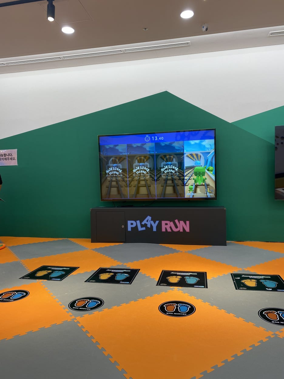 1층에는 놀이터 말고도, 추가적인 시설들이 무료로 운영되는데, 화면에 보이는 제자리 달리기도 아이들한테 인기가 많다.