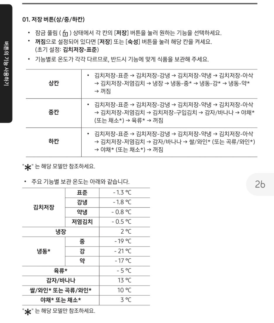 위에 주요 기능별 보관 온도를 보자. 우리가 일반적으로 설정하는 냉장 온도는 2도씨. 여기서도 동일하다.