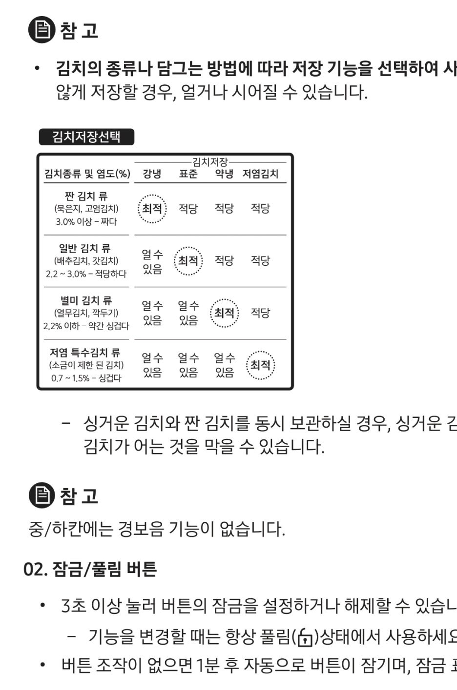 아래는 김치냉장고에 붙어 있는 QR코드를 이용해서, 접속한 후에, 어렵사리 찾은 정보이다.