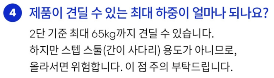 밟고 올라서는 용도로 만들어진 제품은 아니지만, 일단 무게는 60kg정도 버틸 수 있다고 한다.