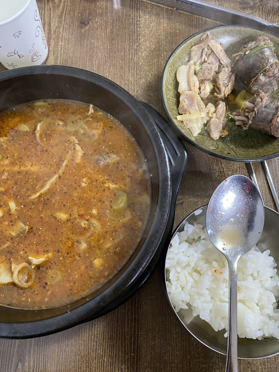 위에는 다데기 풀고, 들깨 추가한 순대국밥. 여기 순대가 특히하게 당면 only 순대가 아니었던 것으로 기억한다.