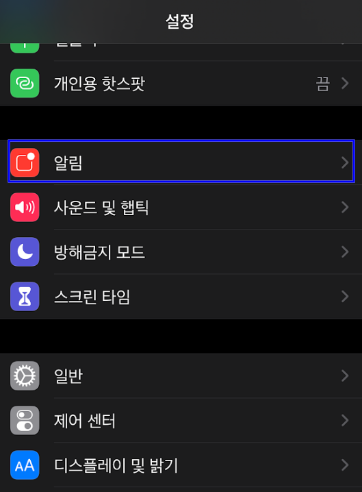 개인정보를 잘 보호하면서도, 사용에 크게 불편함이 없는 가장 좋은 상태라고 생각한다. 우선 아래와 같이 설정에서 알림에 들어가자.