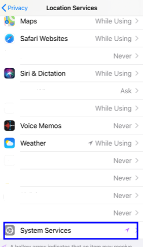 위치서비스 맨 아래에 있는 시스템 서비스로 들어가면 'Wi-Fi 네트워크'라고 표시가 있고, 체크해제하면 된다고 한다.