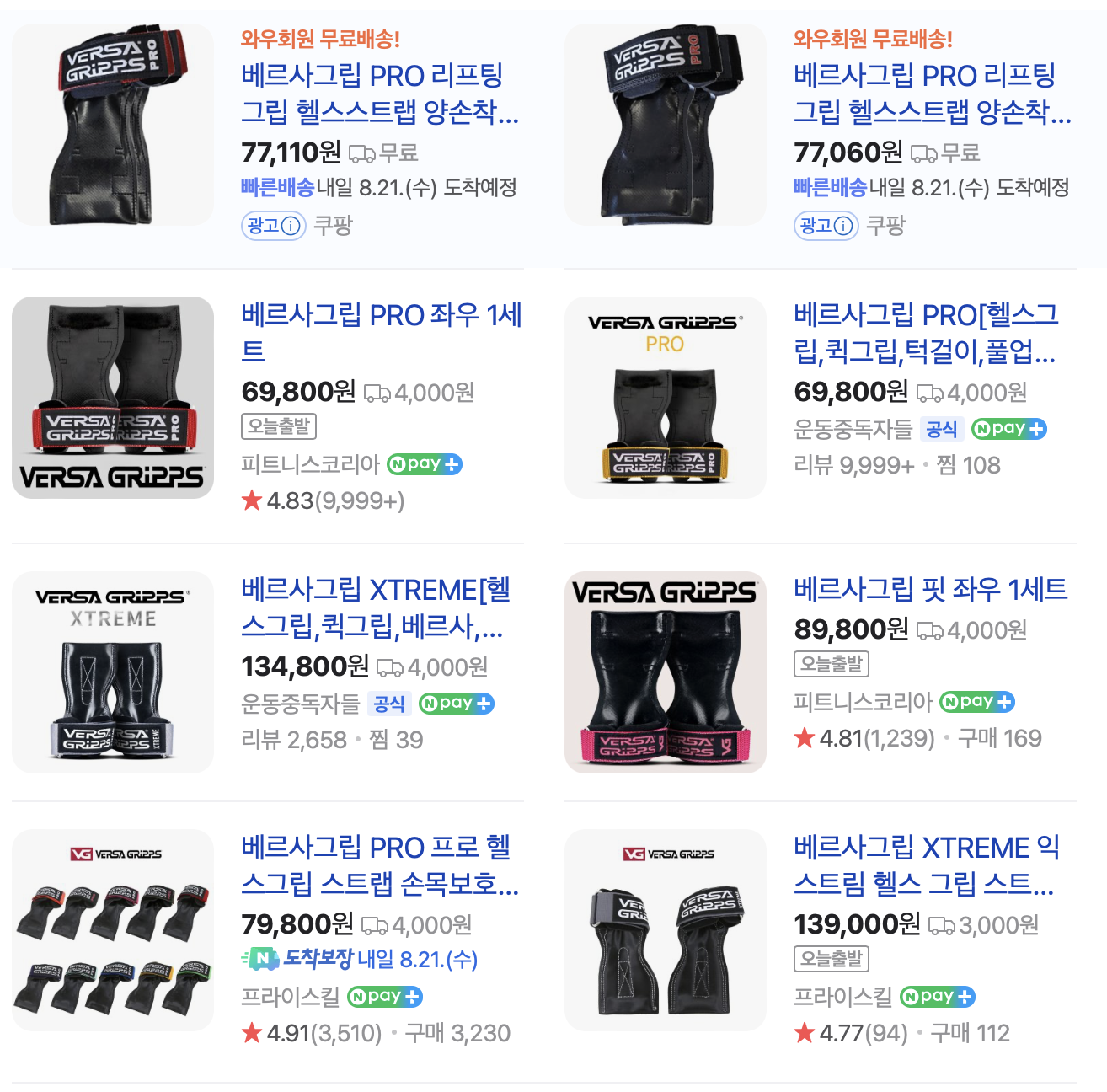 먼저 말이 필요없는 베르사그립이다. 나도 나중에는 베르사그립을 구입할 예정이지만, 내가 드는 무게 수준에서 과연 이정도 퀄리티의 리프팅 그립을 구매해도 되는것인지 확신이 없었다.