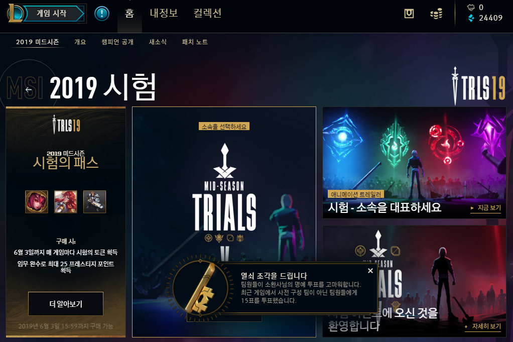 또한 현재 2019 프레스티지 포인트 3개로 온전한 열쇠1개를 받을 수가 있다.