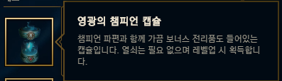 영광의 챔피언 캡슐에는 챔피언 파편과 보너스 전리품도 들어 있다.