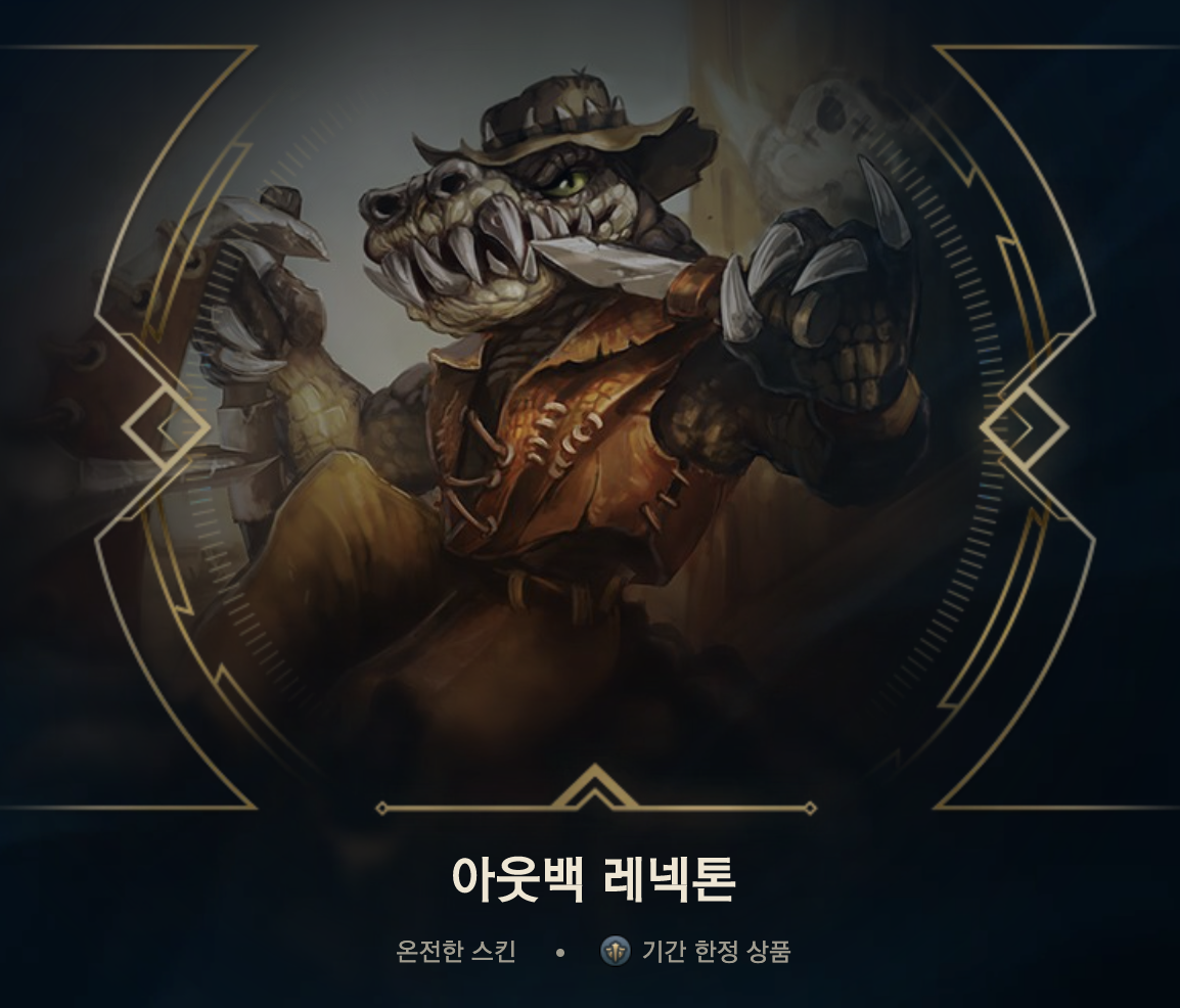 레넥톤 역시 내가 안하는 챔프다. 그러고보니, 접근전이 필요한 ad챔프를 내가 안하는 구만..