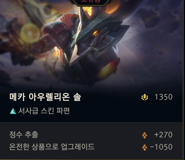 첫번째는 이미 가지고 있는 메카 아우렐리온 솔 스킨 파편이다.