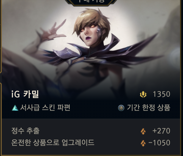 세번째는 IG카밀인데, 역시나 잘 안하게 되는 챔프다.