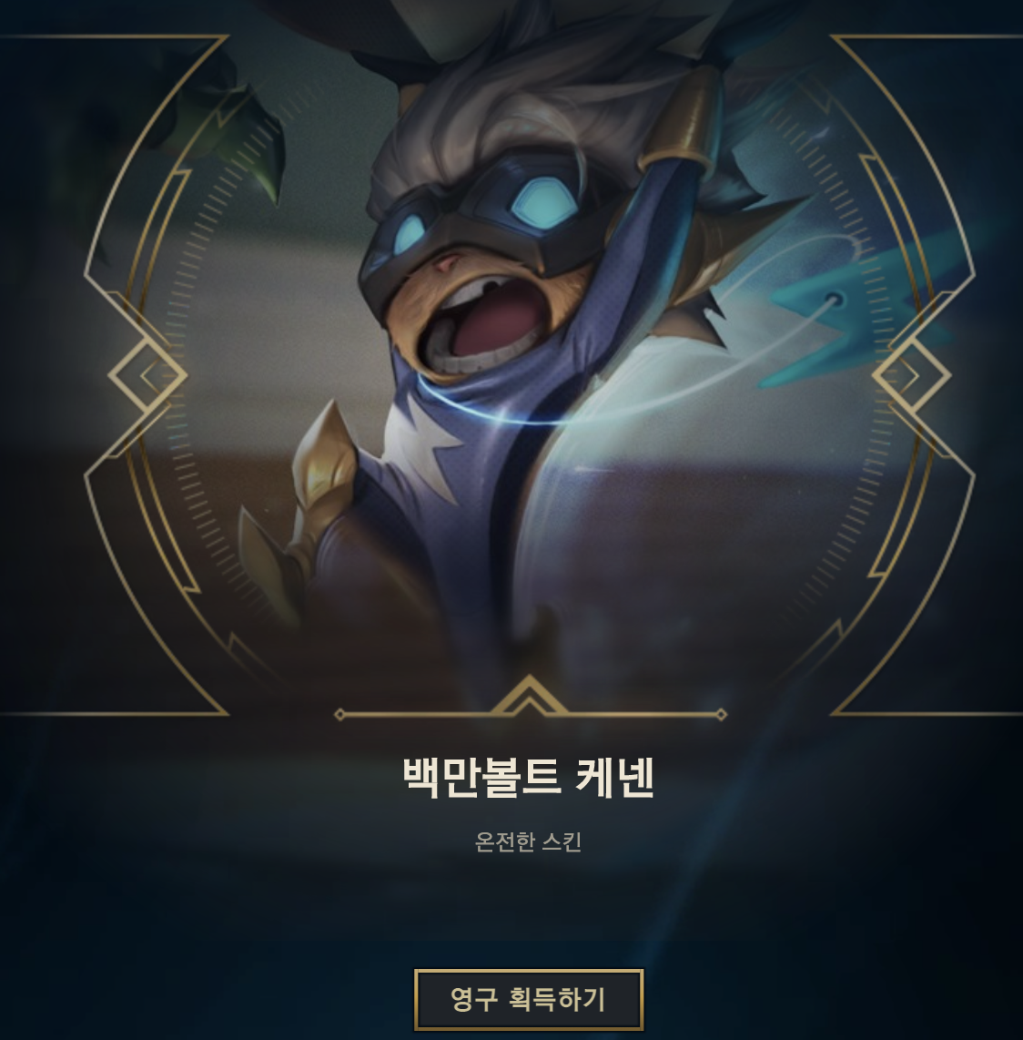 결과는 백만볼트 케넨...일반스킨인데, 토이스킨으로 분류가 되서,