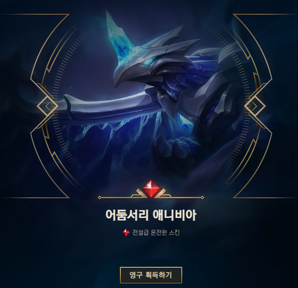 재조합의 결과는?? 어둠서리 애니비아다. 전설급 스킨인데....변경된게 뭐냐 대체.....