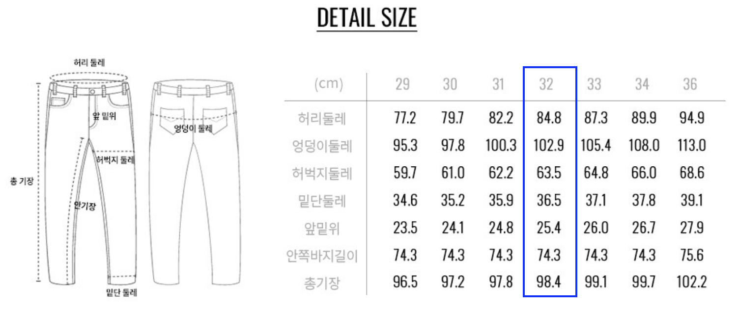 그러나 기존 바지들이 건조기로 줄어들어서인지 모르겠지만, 기존 32 사이즈 바지들보다는 새로 구입한 10112910 32사이즈가 좀 더 여유로웠다. 그래서 오히려 좋다고 해야하나??