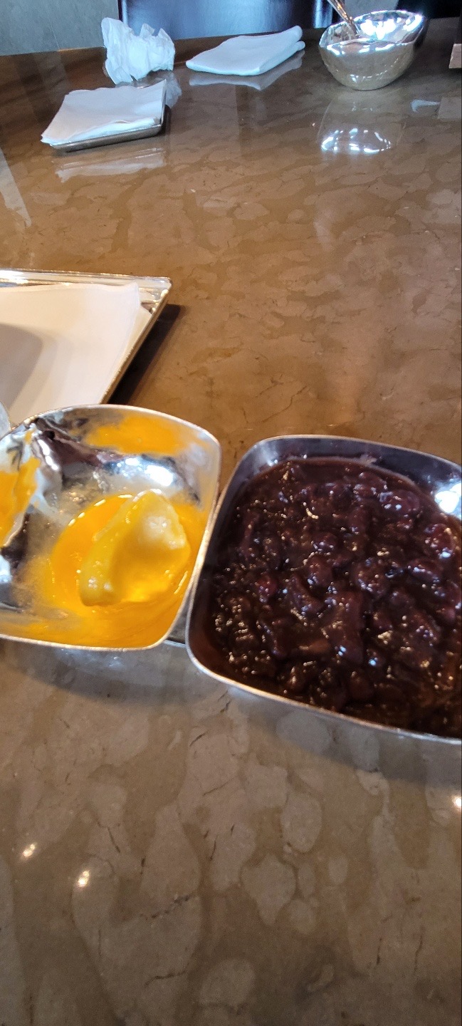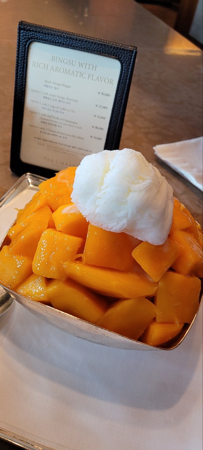 여기 망고 셔벗은 생각보다 많이 달아서, 망고 셔벗은 롯데호텔이 조금더 마음에 들었다. 망고 과육 자체는 신라호텔이 더 크게 썰려 있어서 한입가득 넣고 먹기 좋았다. 얼음은 롯데호텔은 코코넛얼음이었고, 신라호텔은 우유얼음인데, 팥과 맛이 더 잘 어울리는 것은 우유얼음인것 같다. 어디까지나 내입맛 기준이라....;;;