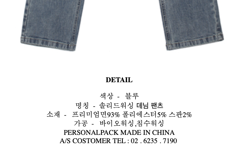 이것도 라지를 구입했는데, 모델명은 솔리드워싱 데님팬츠[스탠다드핏](블루)다.