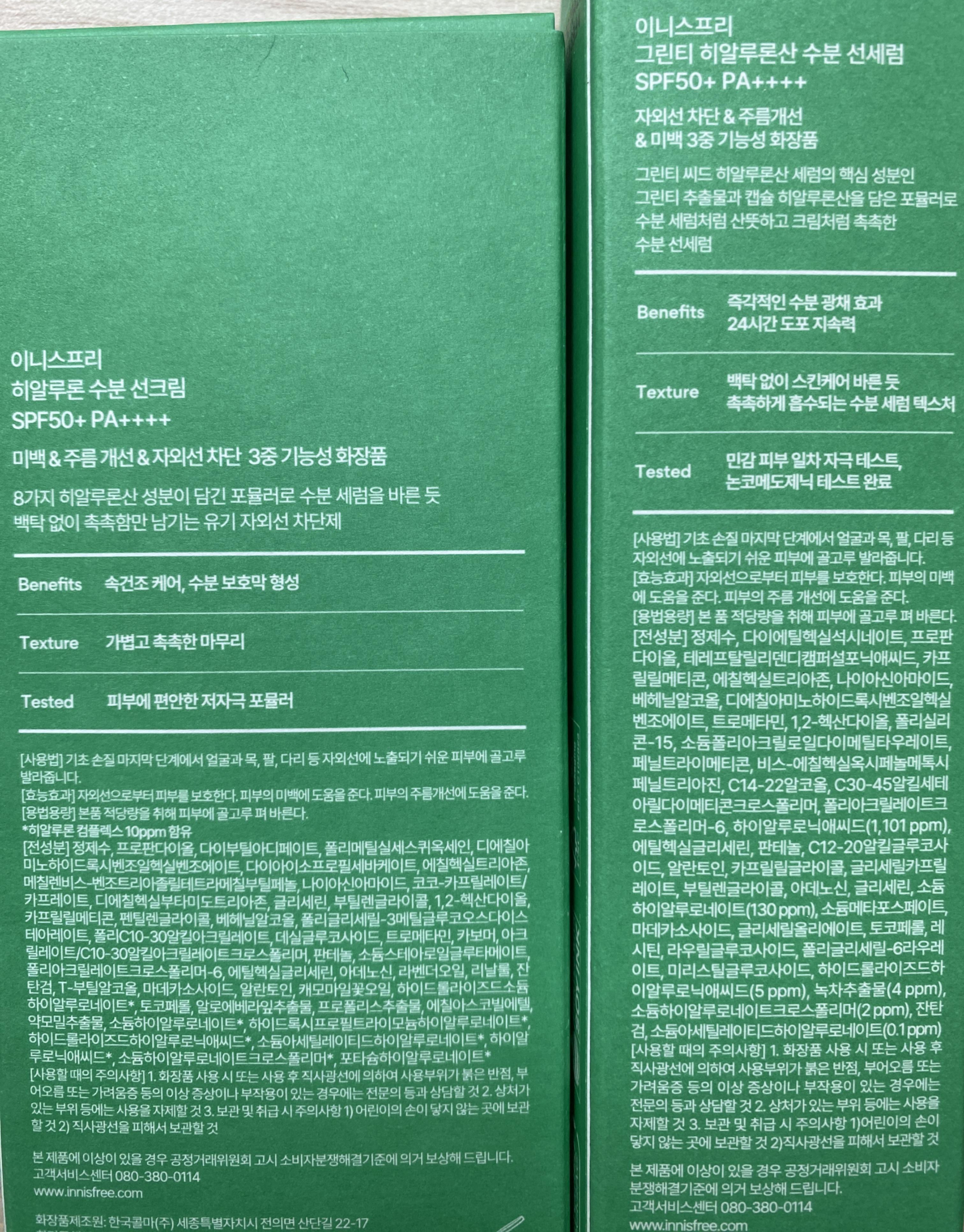 그동안 애용했던 선크림 제품들이 거의다 단종이 되고, 작년부터 정착한 이니스프리 선크림 2종이다. 명동 매장에서 반값을 하길래 한번 사봤다가 마음에 들어서 계속 사용중이었는데, 최근에 블프 세일을 통해 다시 반값으로 4개 구입했다.