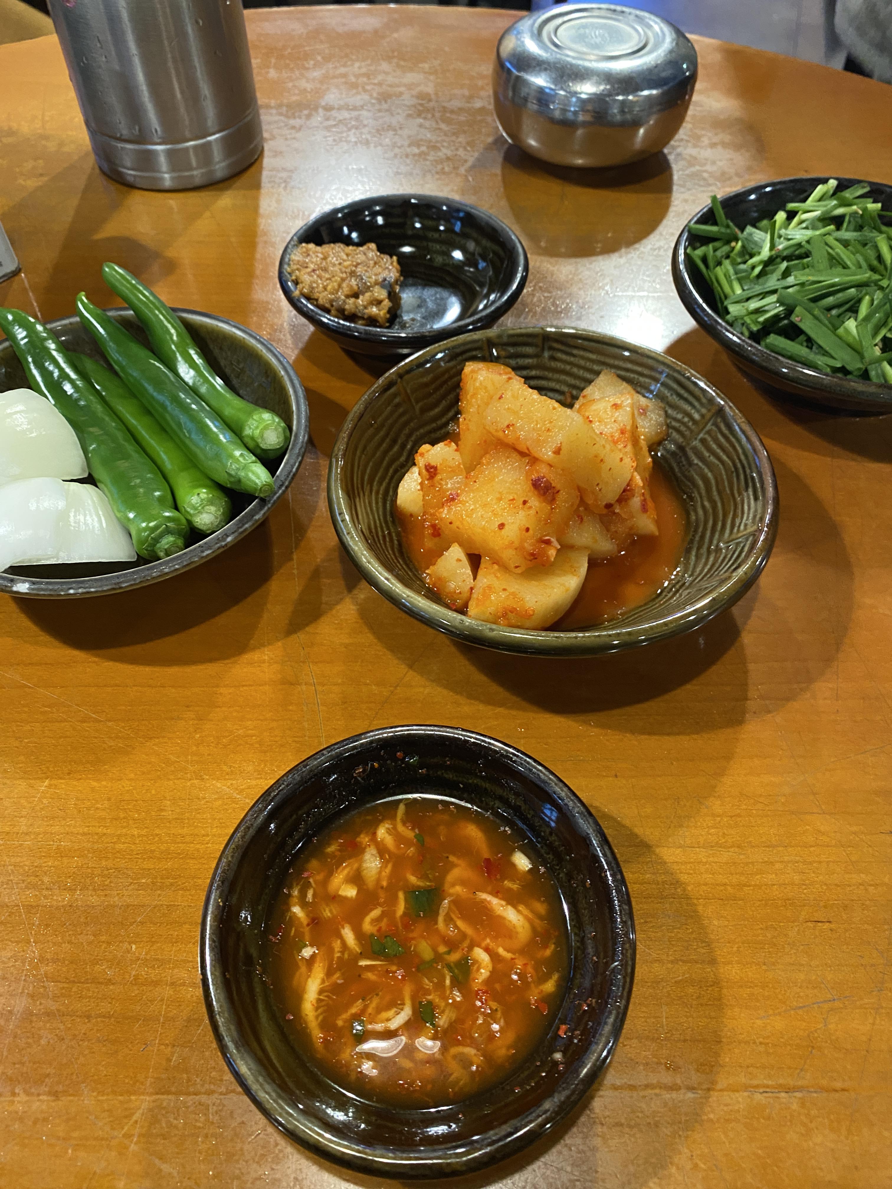 세팅은 일반적인 순대국과 동일하지만, 역시나 유명한 순대국 가게답게 김치가 맛있었다. 다른 반찬들도 괜찮은 수준이었다.