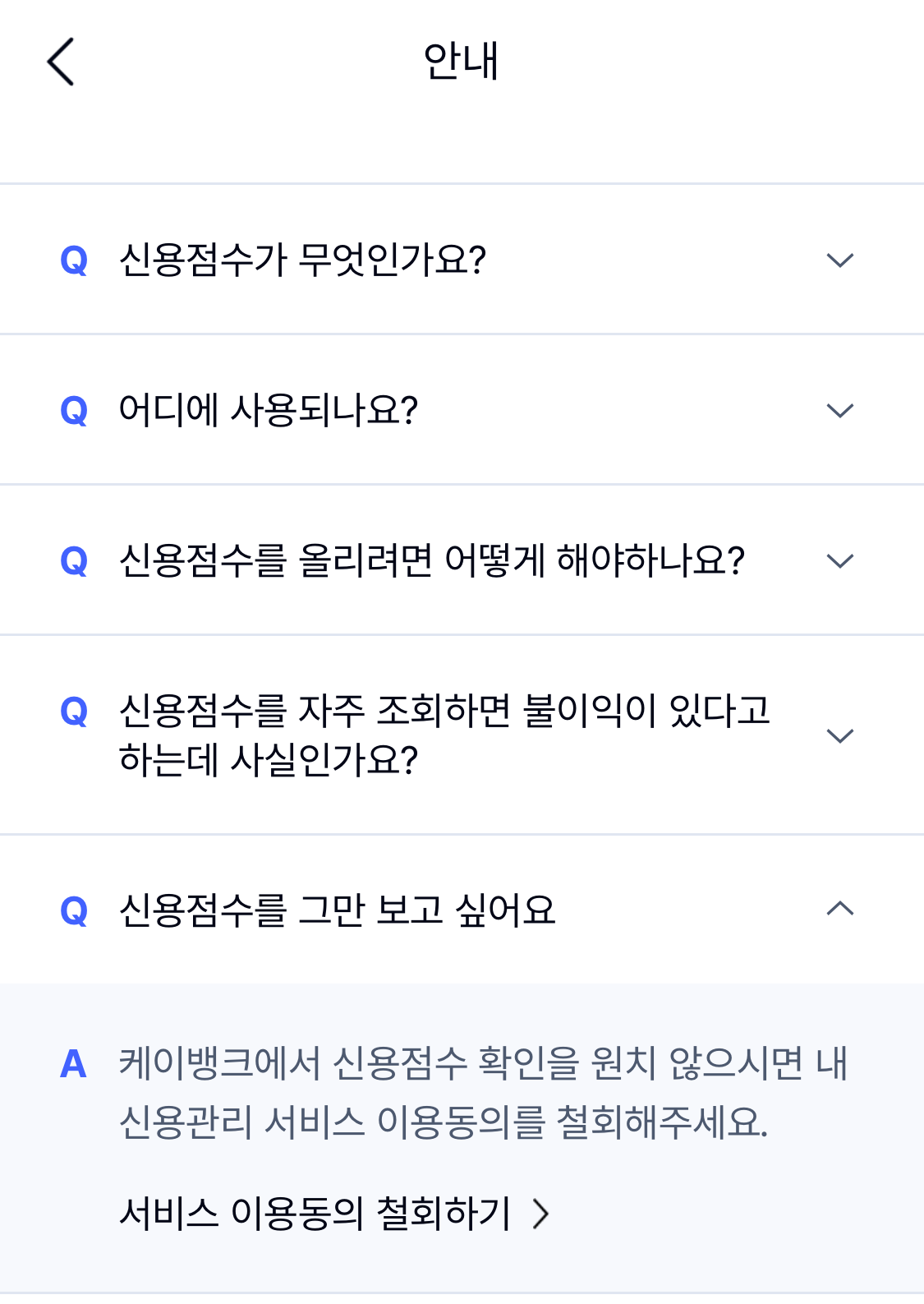 만약 신용점수 확인을 철회하고 싶으면 아래와 같이 진행하면 된다.