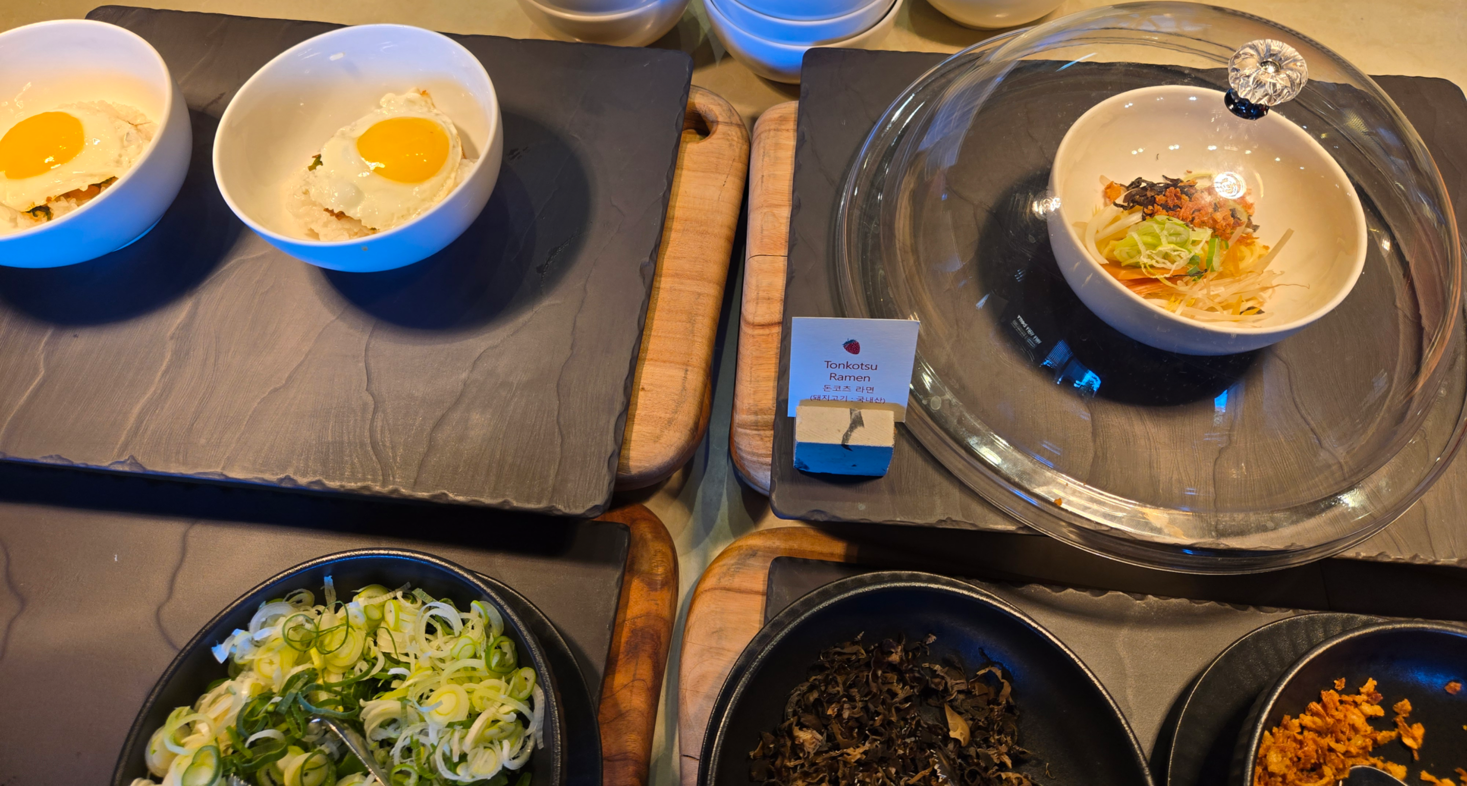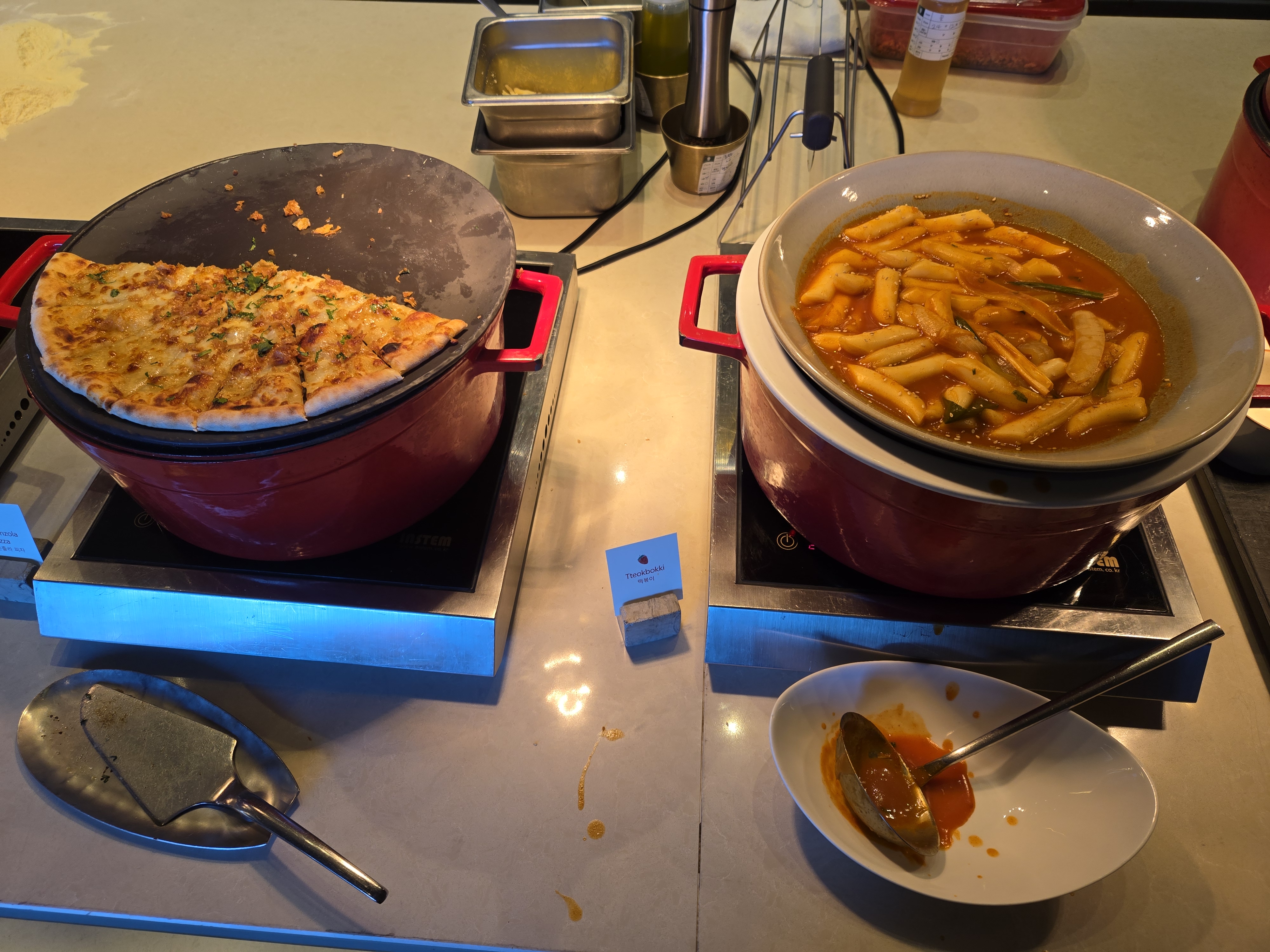 반얀트리 그라넘 다이닝 라운지는 쌀국수가 유명해서 쌀국수가 나올줄 알았는데, 돈코츠라멘이 나와서 의외였고, 디저트랑 먹기 느끼하지 않을까 싶었는데 괜찮았다. 디저트 먹고 느끼할때마다 마라윙이나 떡볶이 하나씩 집어먹으면 다시 리셋된다.
