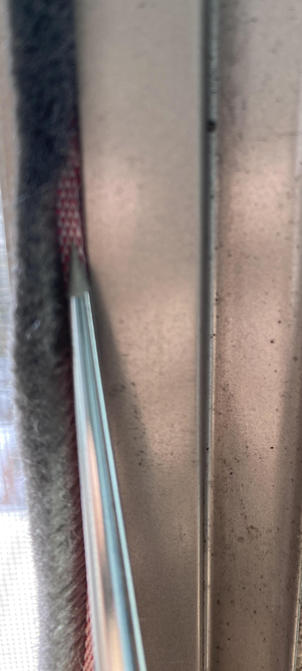 이걸로 어떻게 해야 하는지는 아래의 사진으로 대신할 수 있다. 일단 기존의 모헤어를 제거하려면 날카로운 도구로 샷시 홈 밖으로 끌어내야 한다. 이때 송곳을 이용해서 안쪽에서 바깥쪽으로 밀어서 잡아 당긴다. (필요시 양옆 방향으로도) 이후 롱노우즈로 잡아서 어느정도는 끌어내줘야 한다. 이건 직접 해봐야안다. 사진은 없음. 위에서 쑤시든 아래로 쑤셔넣든, 옆으로 들어내든 간에 암튼 송곳을 이용하여 끝을 일단 잡아 빼는게 중요하다.