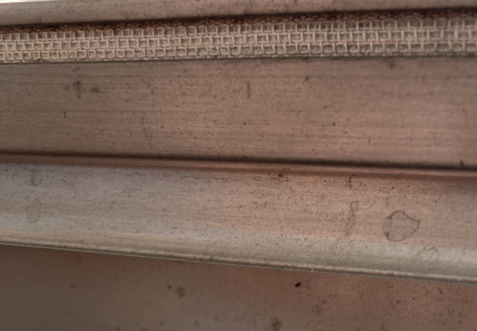 알루미늄 샷시 추운거야 어쩔수 없다지만, 열고 닫을때마다 가루 같은게 계속 떨어지는게 찜찜해서 창틀을 확인해보니, 모헤어가 삭아서 가루가 되어 날리는 모습이었다.