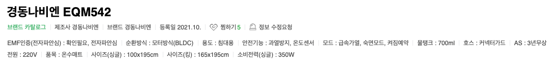 예전에 구입했던 제품은 EQM542-SS로 21년도 10월에 등록된 제품이다.