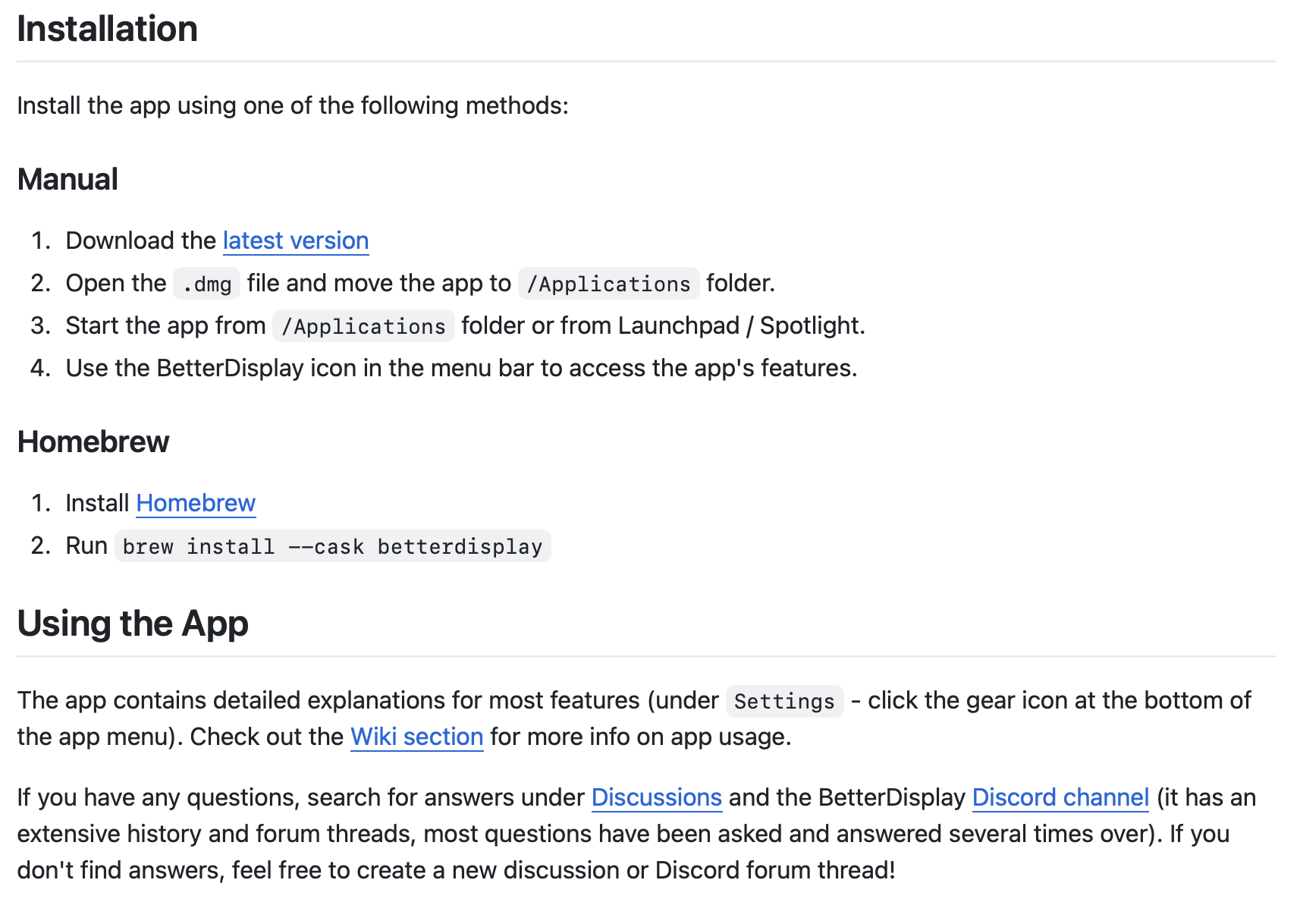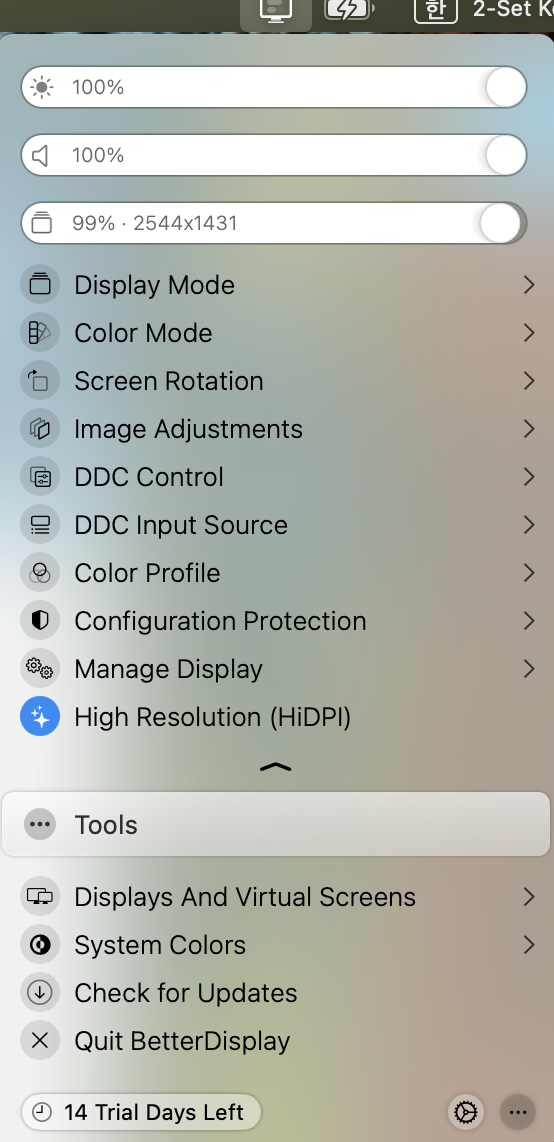 안타깝게도 기존에 사용중이던 벤큐 모니터는 QHD다. 즉, 맥OS 권장 해상도인 UHD에 한참 부족하다. 그래서인지 영상을 볼때는 괜찮지만, 웹서핑을 할때 느껴지는 텍스트의 둔탁함이 살짝 아쉬운차에, betterdisplay라는 프로그램을 찾게 된다.