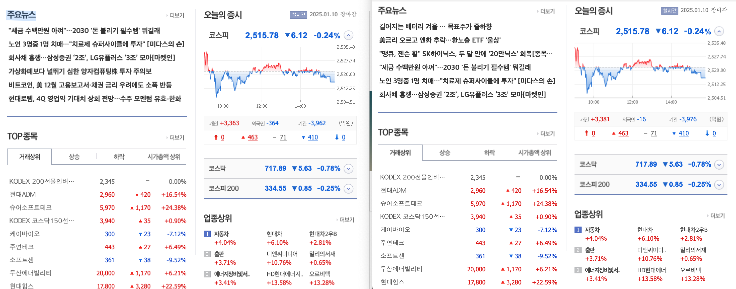 2개를 합쳐 놓으니 잘 안보이는거 같은데, 하나씩 보면