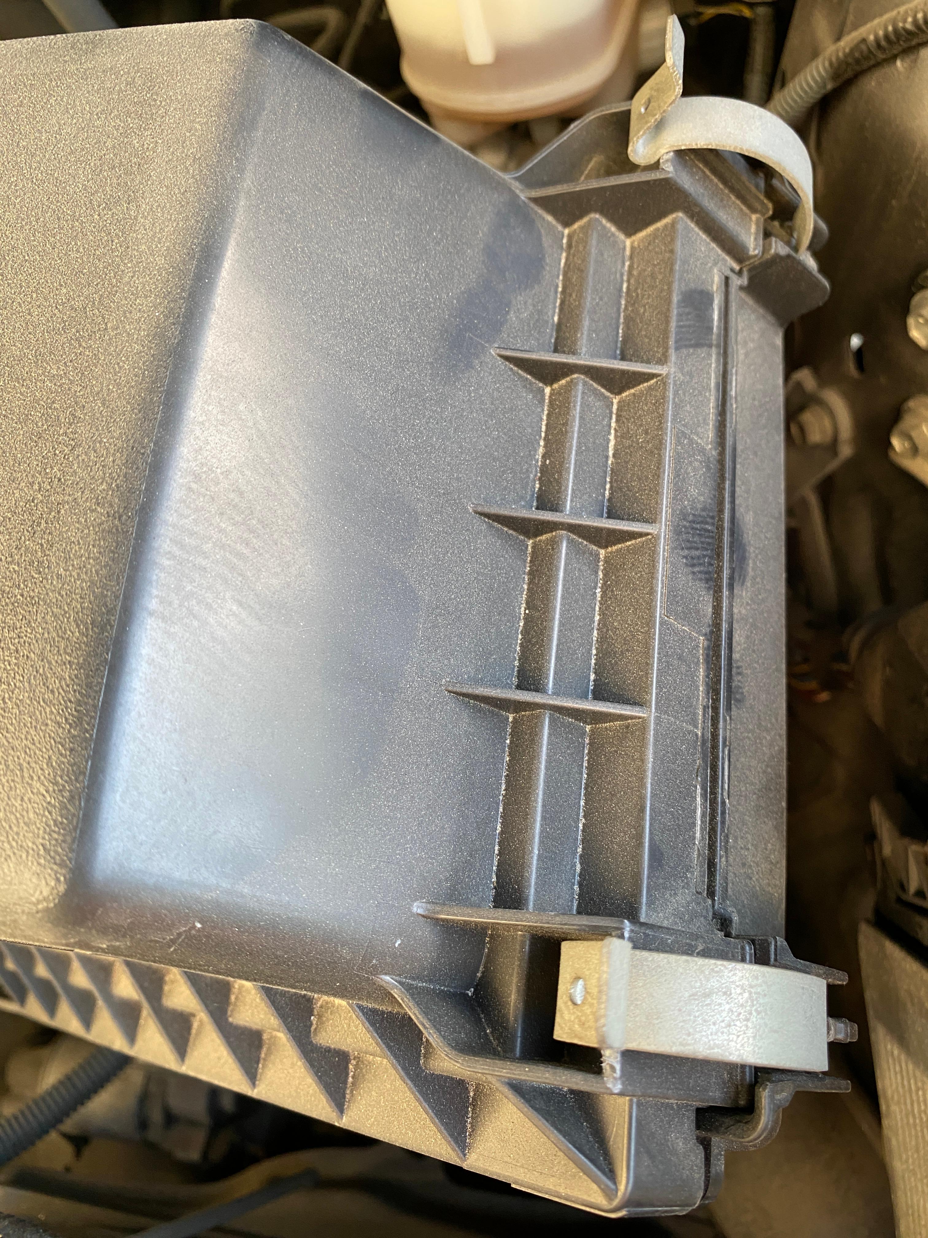 와....먼지가 제법 많이 쌓여서 드럽긴한데, 우측에 보이는 은색 걸쇠 두개를 뒤로 젖히고, 반대쪽에 끼워져 있는, 고리를 살짝 빼내서 들면 쉽게 분리가 된다. 손이 부족해서 안쪽 사진은 못찍었는데, 위에 에어클리너에 고무처럼 보이는 곳이 살짝 걸쳐지는 방식으로 설치가 된다.