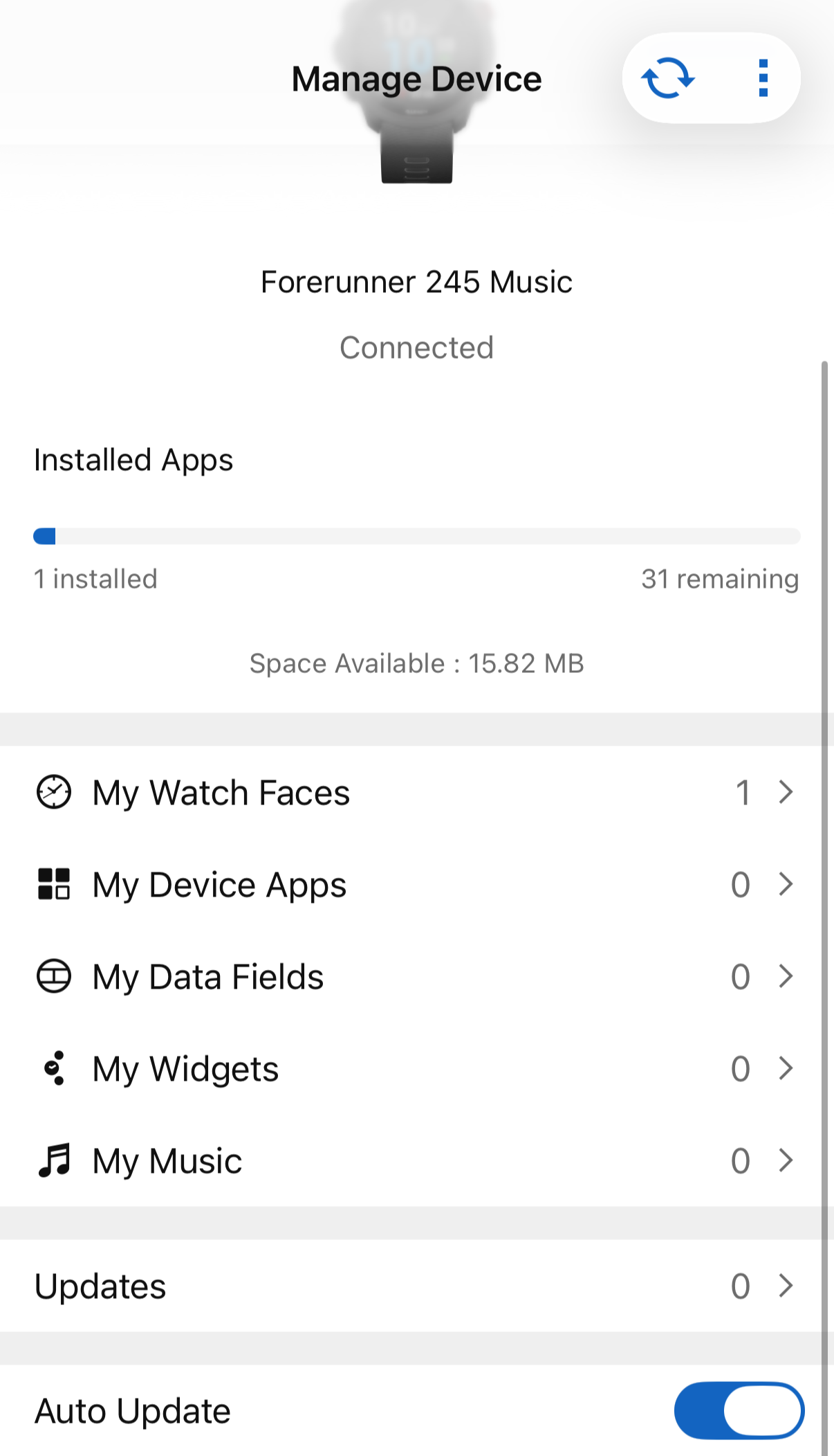 근데 여기서 문제가 발생했다. connect IQ 어플에서 시계를 인식하지를 못하는게 문제였다. 커넥트에서는 연결이 되어 있는데, 커넥트iq에서는 장치 없음으로 계속 나오는 것이었다.